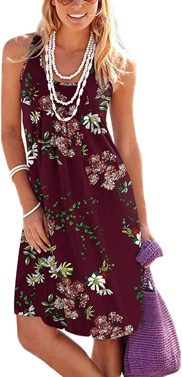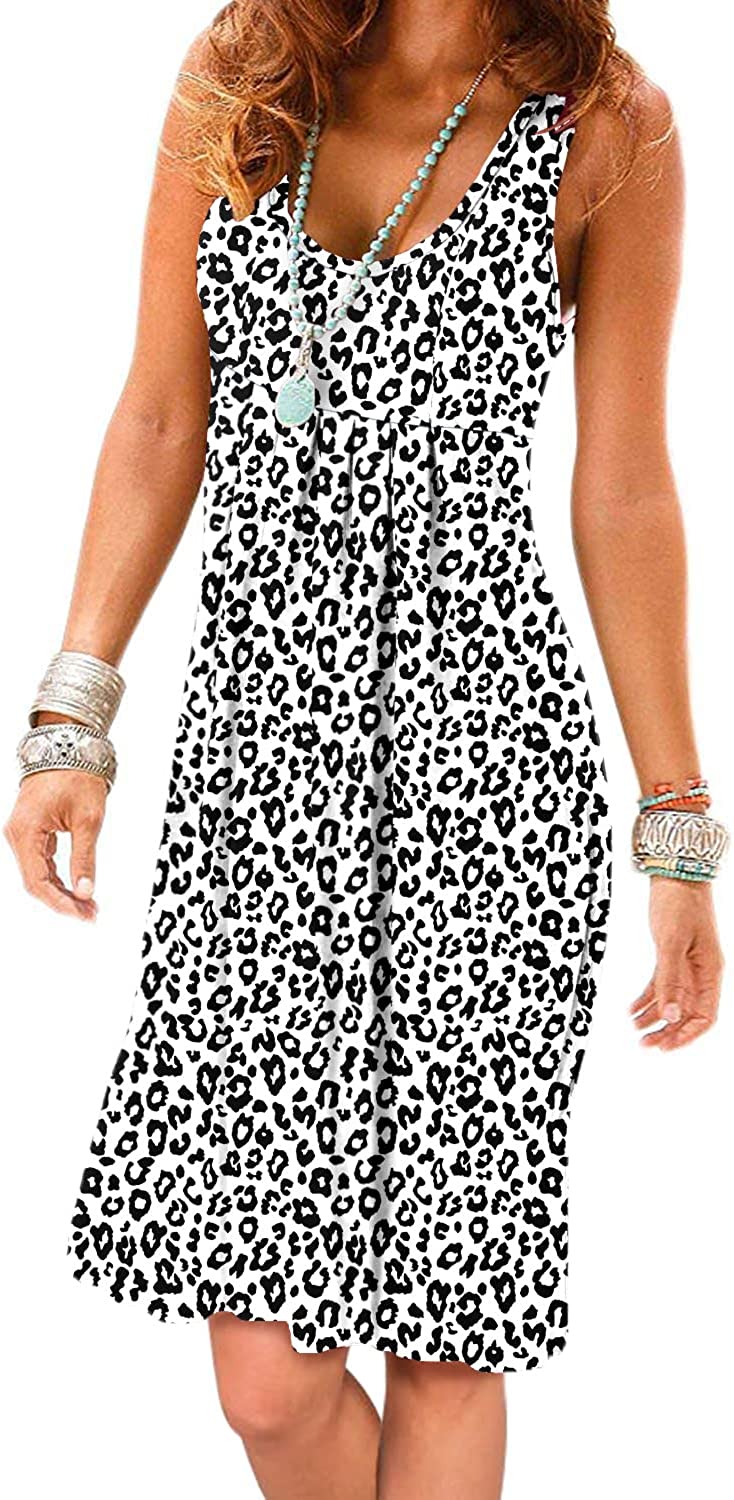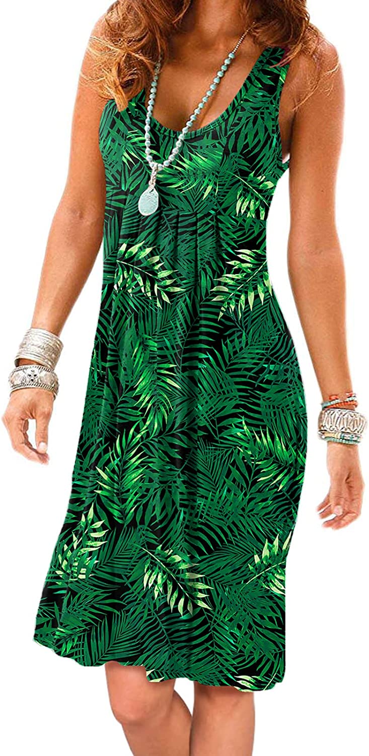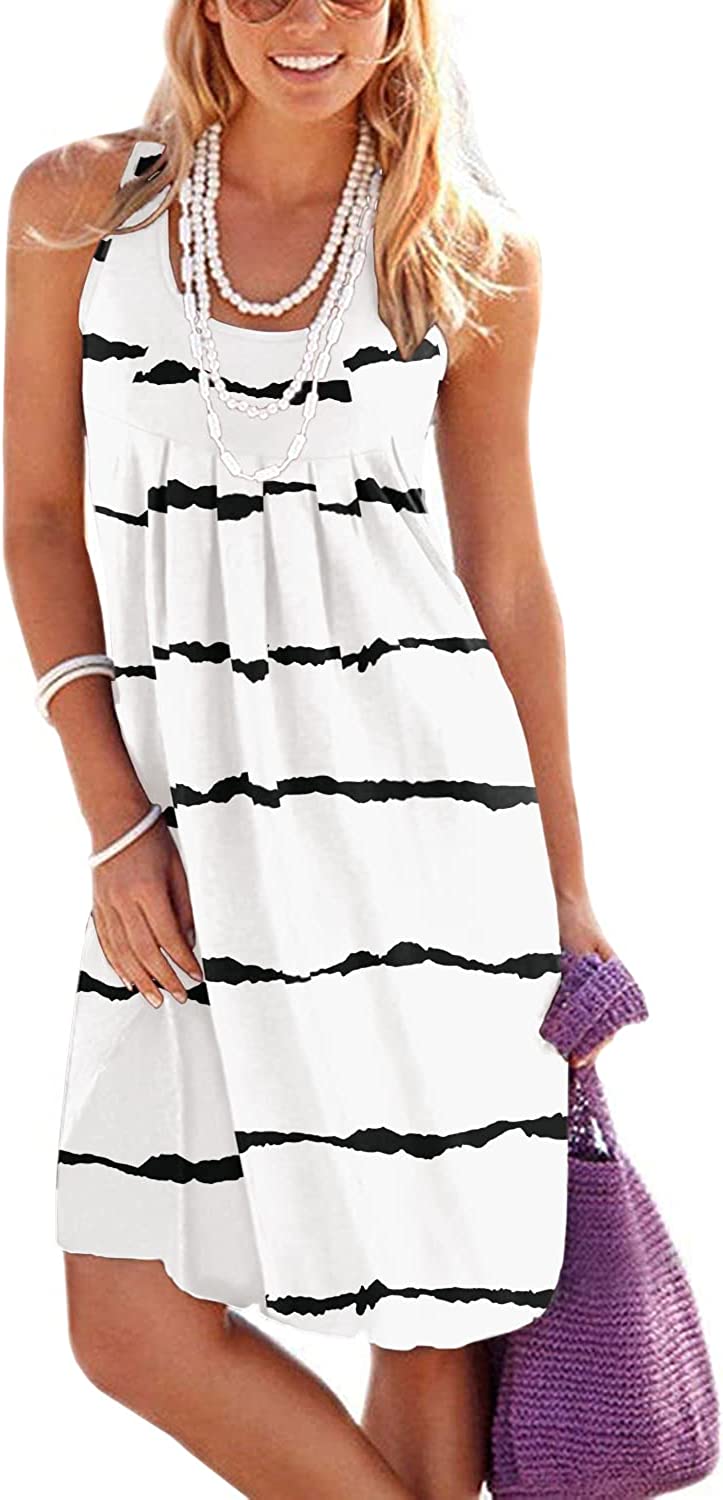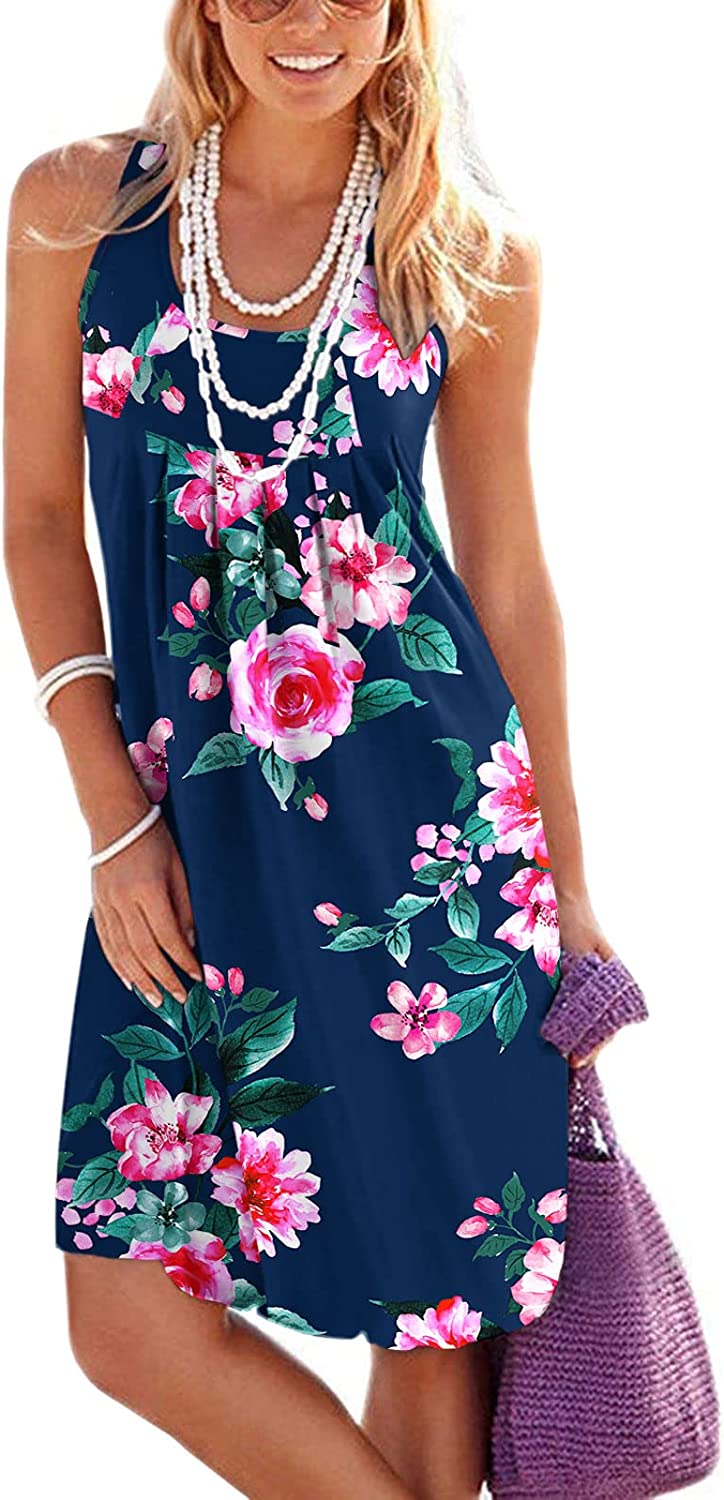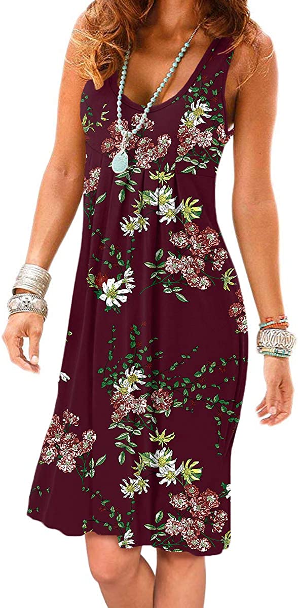 Jouica Women's Casual Summer Tank Sleeveless Knee Length Pleated Sun Dresses with Pockets