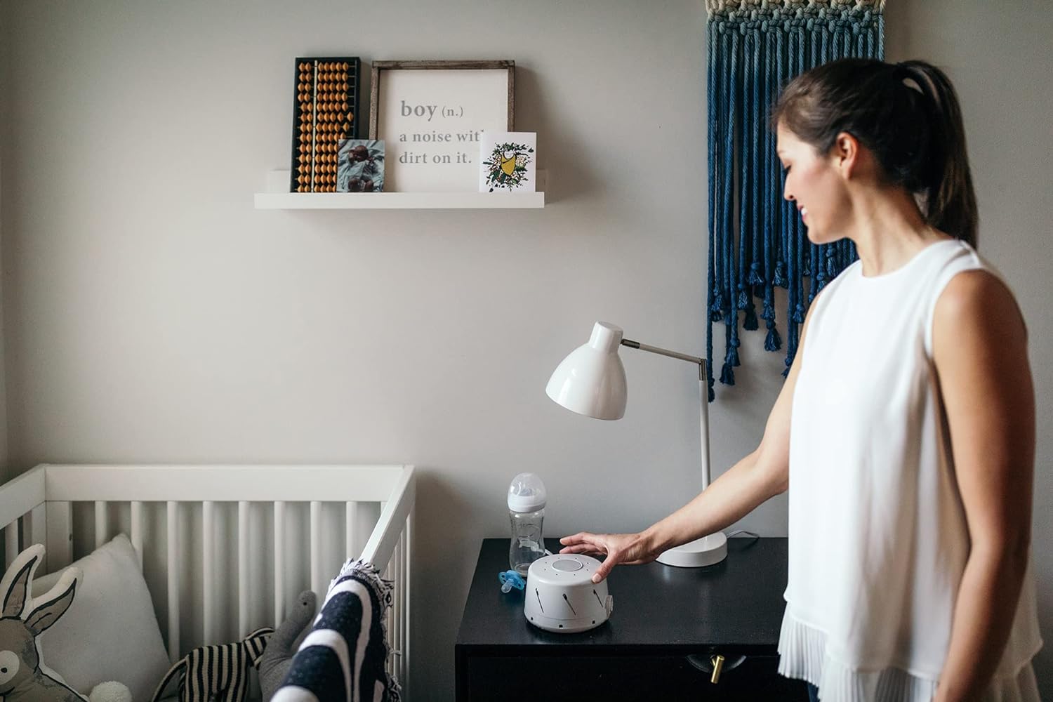 • SIMPLE TO USE: Powered by an 7-foot 120V AC cord, simply plug in, flip the switch to high or low, then rotate the cap and collar to find the best sound for you. Let the noise-masking magic begin to help as a natural sleep aid, baby soothing, tinnitus relief, and respite from noisy snorers.