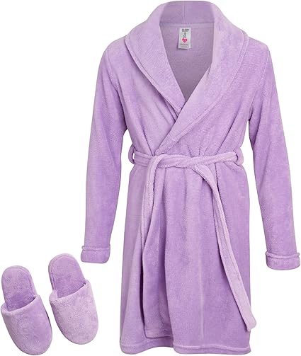 Sleep & Co Girls_Ñé Bathrobe Set _ÑÐ Fleece Robe with Slippers Pajama Set (Size: 5-16), Size 7/8, Lavender
