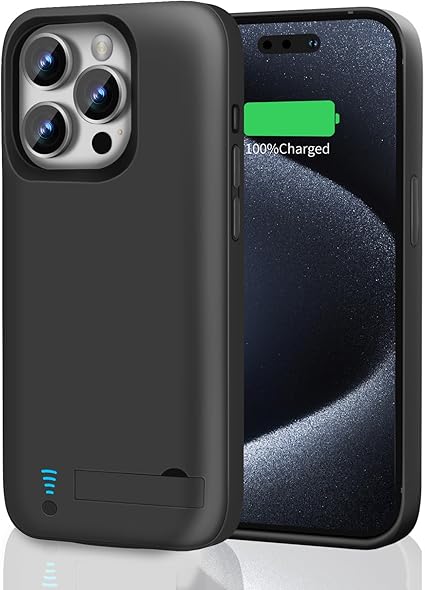 RUNSY Battery Case for iPhone 15 Pro, 5000mAh Rechargeable Extended Battery Charging/Charger Case, Add 100% Extra Juice (6.1 inch) Black