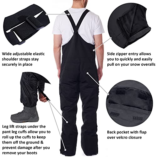 Details: Men’s Waterproof Snow Bib By Alpine Swiss Product Features: Polyester SNOW ESSENTIAL – The Alpine Swiss snow bib overalls are superior to traditional snow pants because they offer more protection from the elements while still offering you a comfortable range of motion for your outdoor snow activities like snowboarding or skiing. Wearing a snow bib under your jacket will ensure that whole body is covered and protected from snow no matter how hard you hit the slopes. WATERPROOF & WINDPROOF – Our snow overall pants are waterproof and windproof which is essential while you’re out in the snow or rain. Made from a 100% polyester shell, fill and lining which provides warmth and keeps you dry with a 5000mm waterproof rating to protect you in wind, snow, and moderate to heavy rain. BREATHABLE – Designed to keep you warm without overheating, a breathability rating of 3000 g/m²/d ensures that the material of the overalls is both water resistant and breathable. Includes inner leg zipper vents to allow heat to escape while letting in cool air to prevent you from overheating. Side zipper entry allows you to quickly and easily pull them on and the adjustable elastic shoulder straps will stay securely in place. SMART DESIGN – Each pant leg has cuff side zippers to ensure that the pant legs fit over any boot. Boot gaiters are a cuff at the inner bottom of pants with a non-slip elastic band to ensure that the boot cuff fits snugly over you boot and keeps out snow. Leg lifts at the boot cuffs allow you to roll up the cuffs and lift them away from the ground to keep them clean and prevent damage to the pant cuffs, a useful feature for when you are done skiing or snowboarding and wearing your regular shoes. FUNCTIONAL – Storage space for all your essentials includes 2 front zipper pockets, 2 large side pant leg cargo pockets with flap-over hook and loop closures, and one back pocket