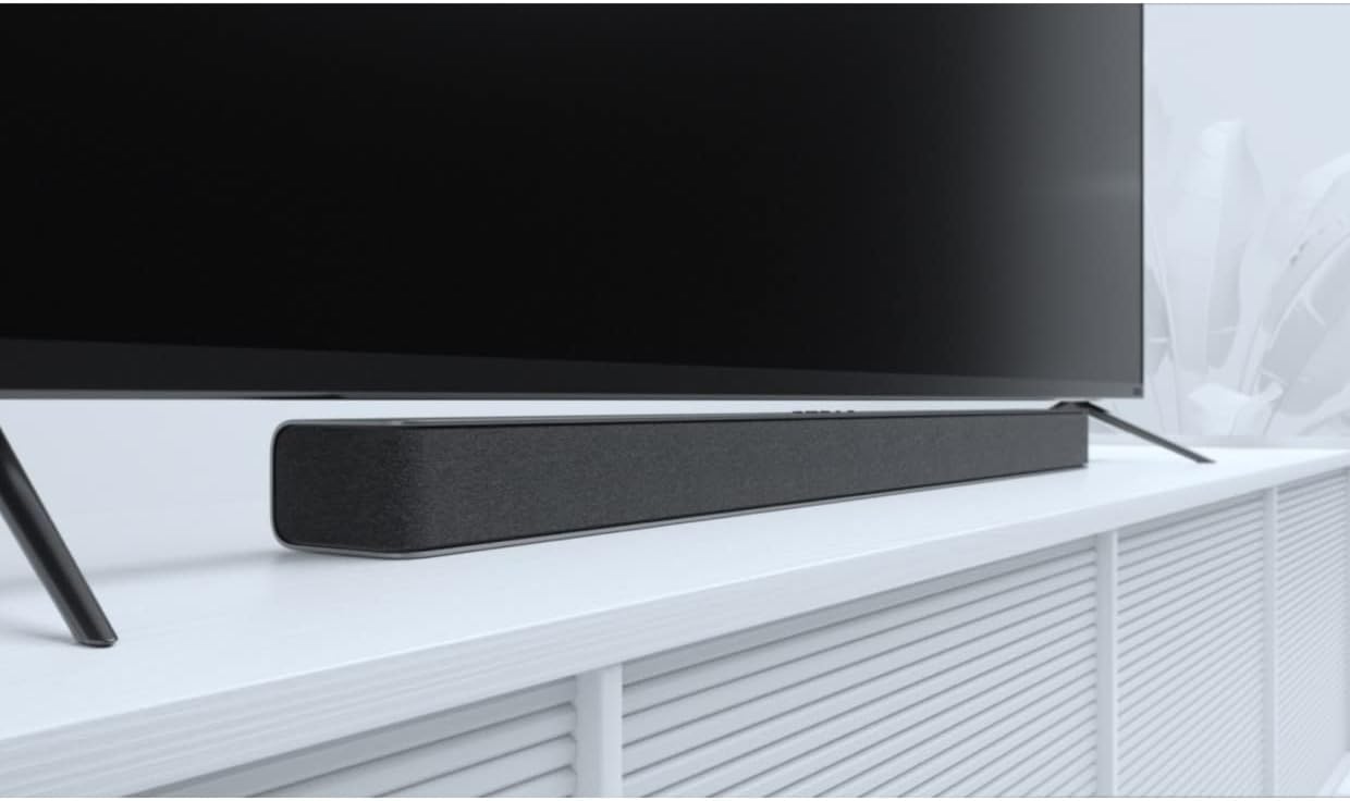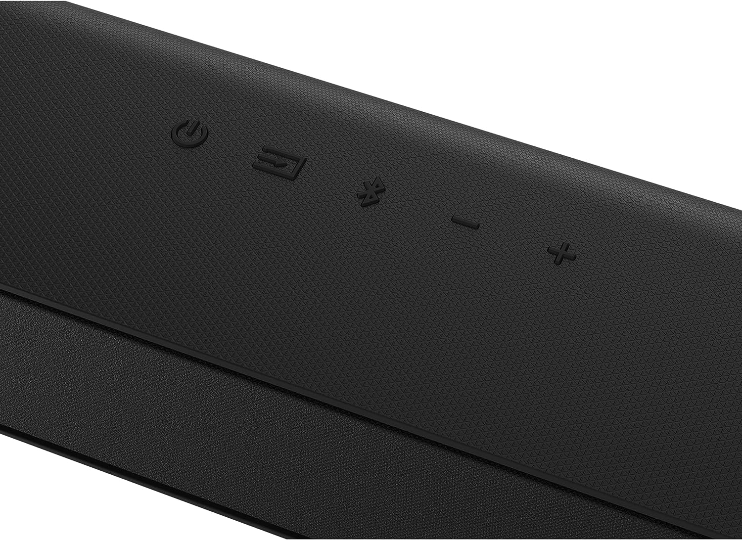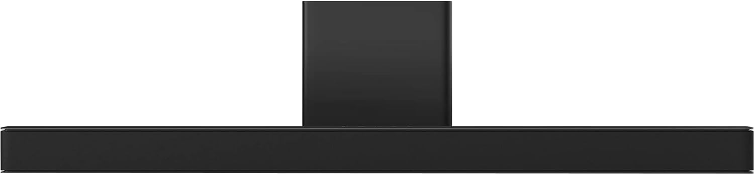 V-SERIES™ 2.1 SOUND BAR | Supersize your | sound power. Enjoy complete sound that transforms your entertainment experience. Experience room transforming sound Make your 4K HDR content even more amazing with the dynamic quality of Dolby Audio and DTS Digital Surround creating a vividly realistic audio experience that transforms the room. 2 FULL-RANGE SPEAKERS | Hear it loud | And clear. Enjoy outstanding clarity and crisp clear dialogue from two power packed full-range speakers. 4.5" WIRELESS SUBWOOFER | Wireless wonder of thunder. Get tremendously deep bass that shakes your space and rocks the room with this remarkably powerful yet compact wireless subwoofer. DESIGN | Modernly minimalist. The clean, low profile design, subtle texture and matte finish add a little bit of modern elegance to any setting. REMOTE | Set the mode to suit your mood. A fully-featured remote with comfort grip makes it easy to customize your audio for the perfect sound experience. VOICE ASSISTANT INPUT | Amplify your assistant. Amplify the voice of your favorite assistant by easily connecting it to the V-Series. It's always on and ready for a command and will automatically lower the volume of what's playing so you can hear the Voice Assistant response clearly.