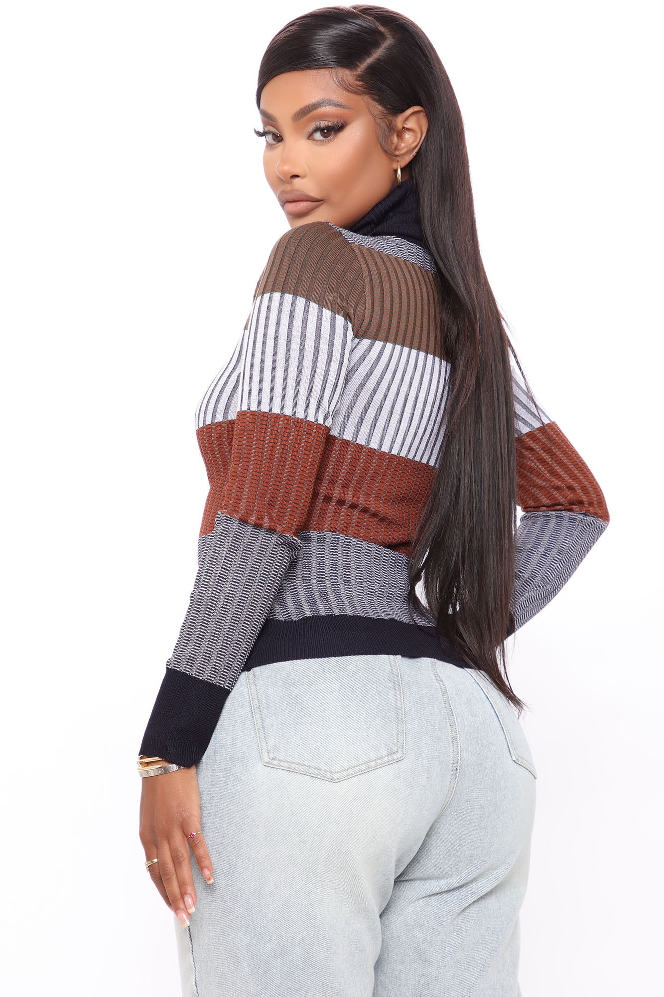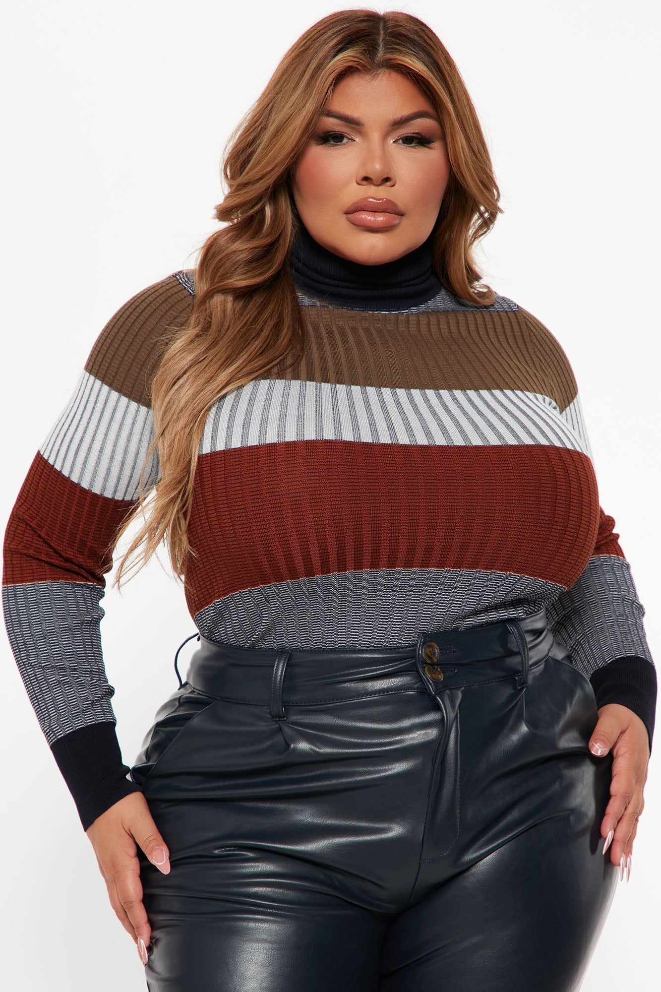 Kyra Turtleneck Ribbed Sweater - Navy/combo
