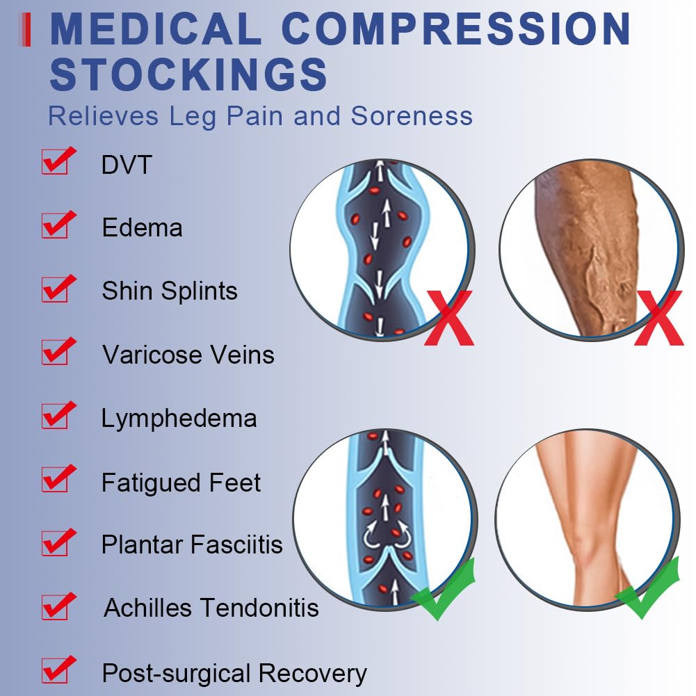 • 🌸GRADUARED COMPRESSION: The 5 intervals of 20-30 mmHg graduated compression deliver a compression action to the leg that is greatest at the ankle, decreasing gradually up the leg, towards the heart. It helps reduce and prevent swelling for the wearer, maintaining positive circulation and leg health. Its level of compression is comfortable and safe, perfect for use after surgery.