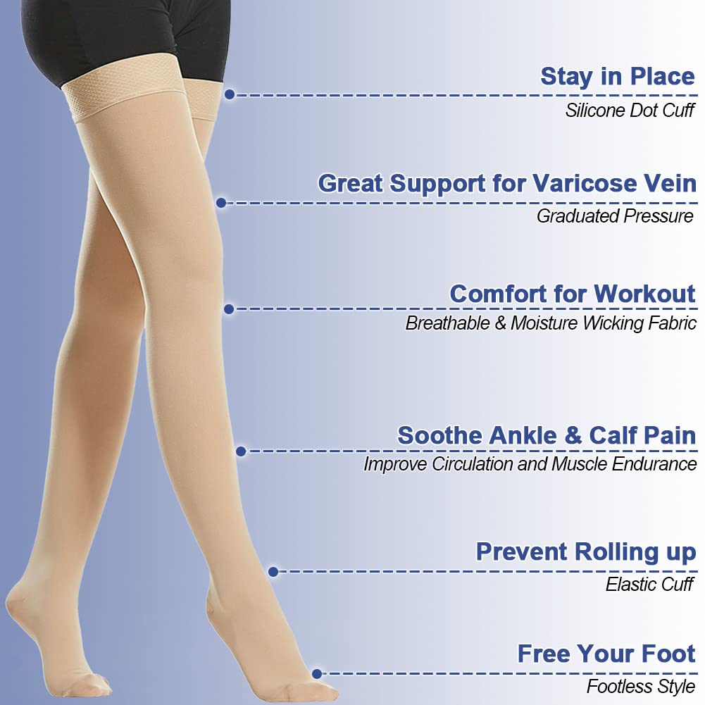 Beister 20-30 mmHg Compression Stockings for Women & Men, Medical Closed Toe Thigh High Socks Graduated Support for Varicose Veins, Edema, Flight
