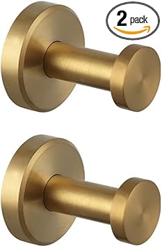 Bathroom and Home Wall Mount Hooks, 2-Pack, Gold