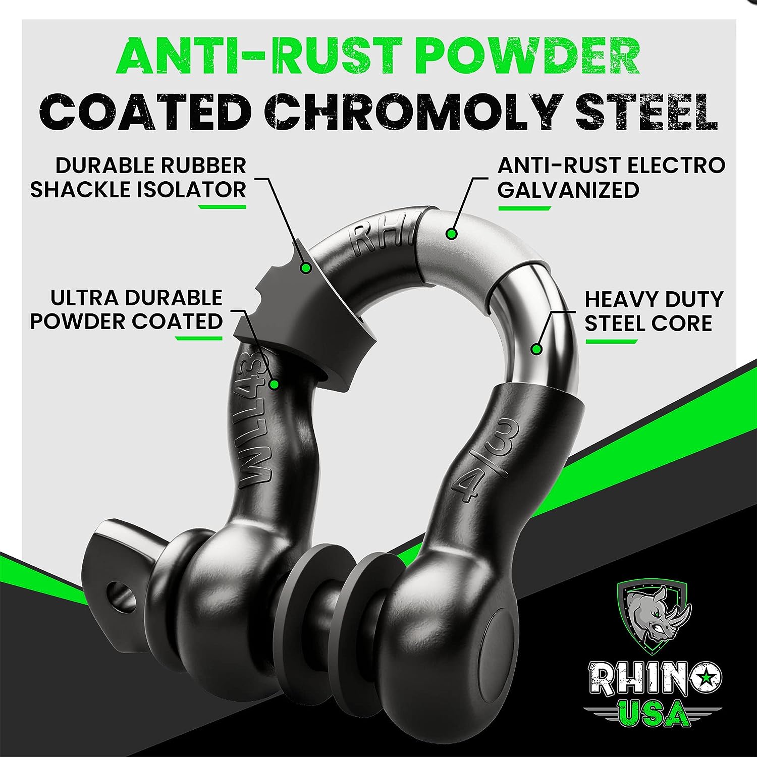 Rhino USA D Ring Shackle 41,850lb Break Strength – 3/4” Shackle with 7/8 Pin for use with Tow Strap, Winch, Off-Road Jeep Truck Vehicle Recovery, Best Offroad Towing Accessories