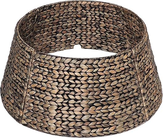 CENBOSS Christmas Tree Collar, Rattan Xmas Tree Collar for Artificial Trees, Woven Wicker Christmas Tree Skirt, Tree Stand Base Cover, Tree Basket Base Box, Christmas Tree Ring (Black Wash, 24 inch)