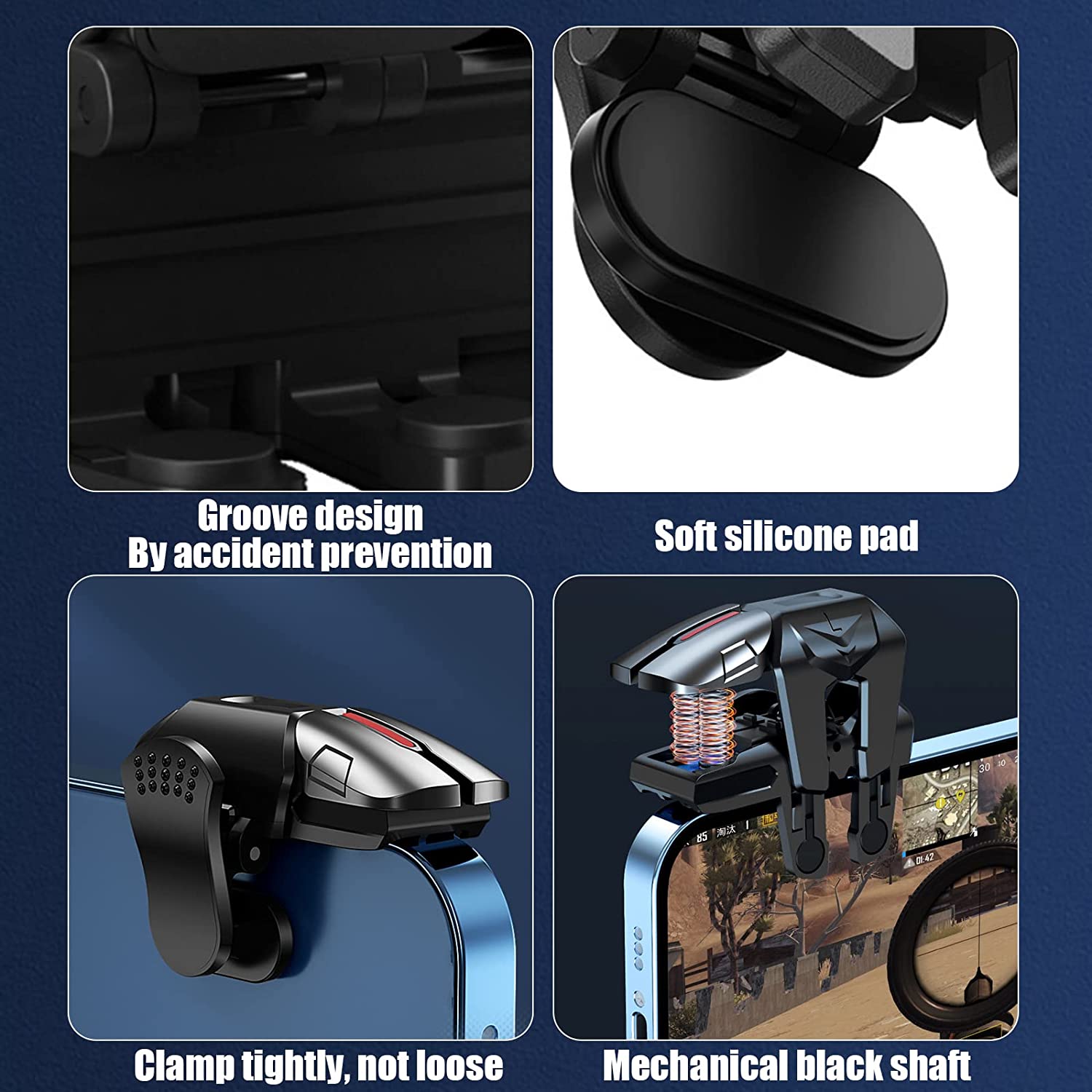 • 【Mechanical Touch】6 trigger PUBG mobile controller designed for longevity with greater durability and responsiveness, more than 2 million click. Fast mechanical keys with medium resistance, precise actuation, audible click sound, and tactile bump feedback. Easy To Use, High Sensitive, Physical Button Feedback. Using this PUBG mobile game controller, you can move, angle adjust, aim and shoot at the same time with the thumbs and index fingers of the left and right hand.