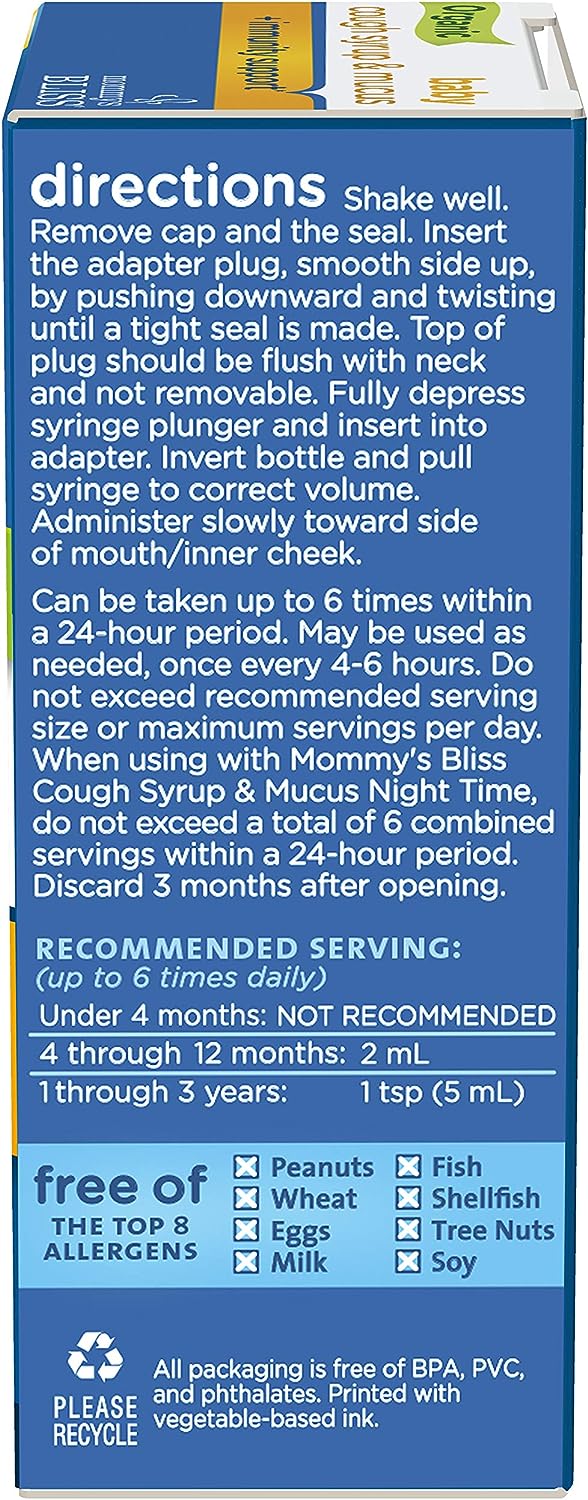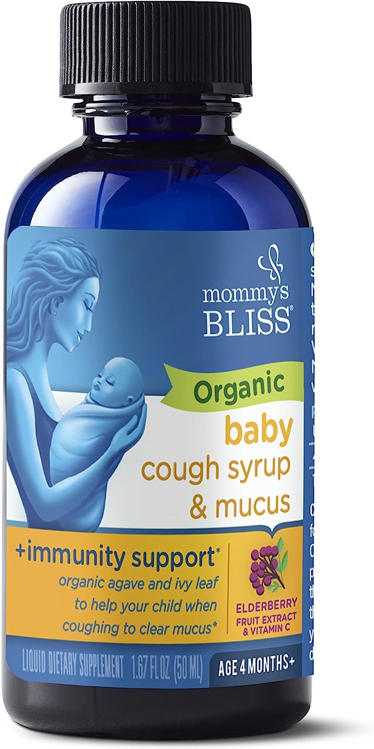 Mommy's Bliss Organic Baby Cough Syrup with Immunity Support offers organic relief for your child when occasional coughs hit. Our cough syrup supports their immunity, relieves discomfort, and helps you find your ultimate parenting bliss. This cough syrup is safe for babies 4 months and can help them when coughing to clear mucus, moisturize and protect their nasal passages, and support their immune system. It contains zero added sugar, alcohol, or artificial flavors or colors, and is also free of the top 8 allergens to avoid! Created for moms, by moms, Mommy's Bliss is made with gentle ingredients to safely bring families back to bliss.