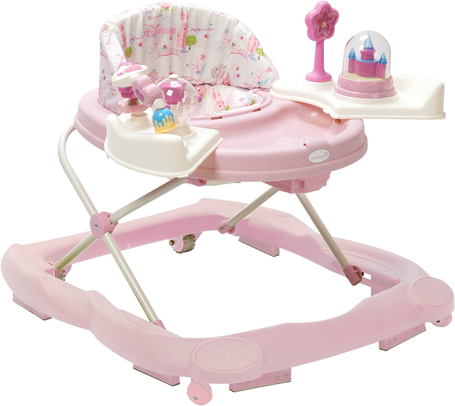 The Disney music and lights walker offers plenty of fun for your little one. Sturdy wheels work well on floors and carpet alike, while the grip strips reduce walker movement on uneven surfaces. The oversized play tray features the Disney characters your child loves so well and conveniently swings open to reveal a snack tray perfect for little treats or other toys. With a machine-washable padded seat, cleaning the walker is as easy as A-B-C.