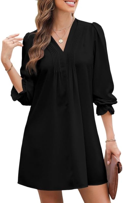 Dokotoo Womens Casual Dress A-Line Ruffle Sleeve V Neck Midi Dress 2024 Fashion Pleated Flowy Sundress Loose Shirt Dresses
