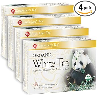 Uncle Lee's Tea Organic White Tea - Premium Tea for Everyday Wellness, Low Caffeine, Antioxidant-Rich White Tea Bags, Individually Wrapped, 100 Count (Pack of 4)