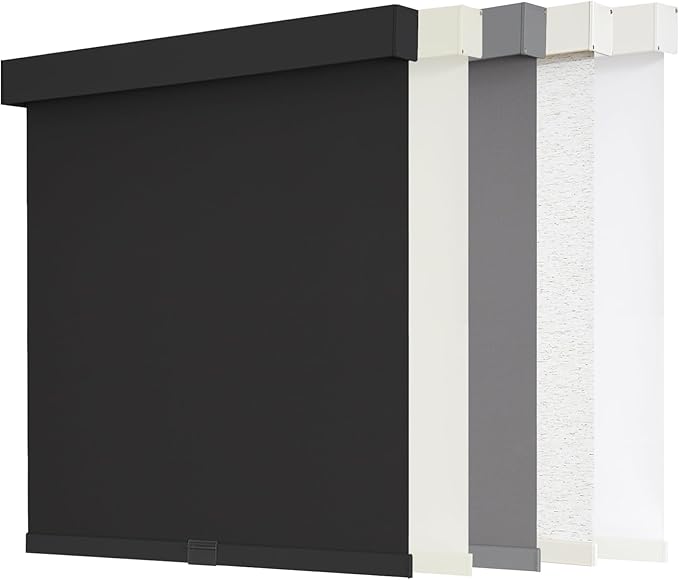 AOSKY Blackout Roller Shades Cordless Blinds for Windows, Free-Stop Shades with Valance, Thermal Insulated Fabric, UV Protection, Natural Woven Blinds for Home and Office (30" W x 72" H, Black)