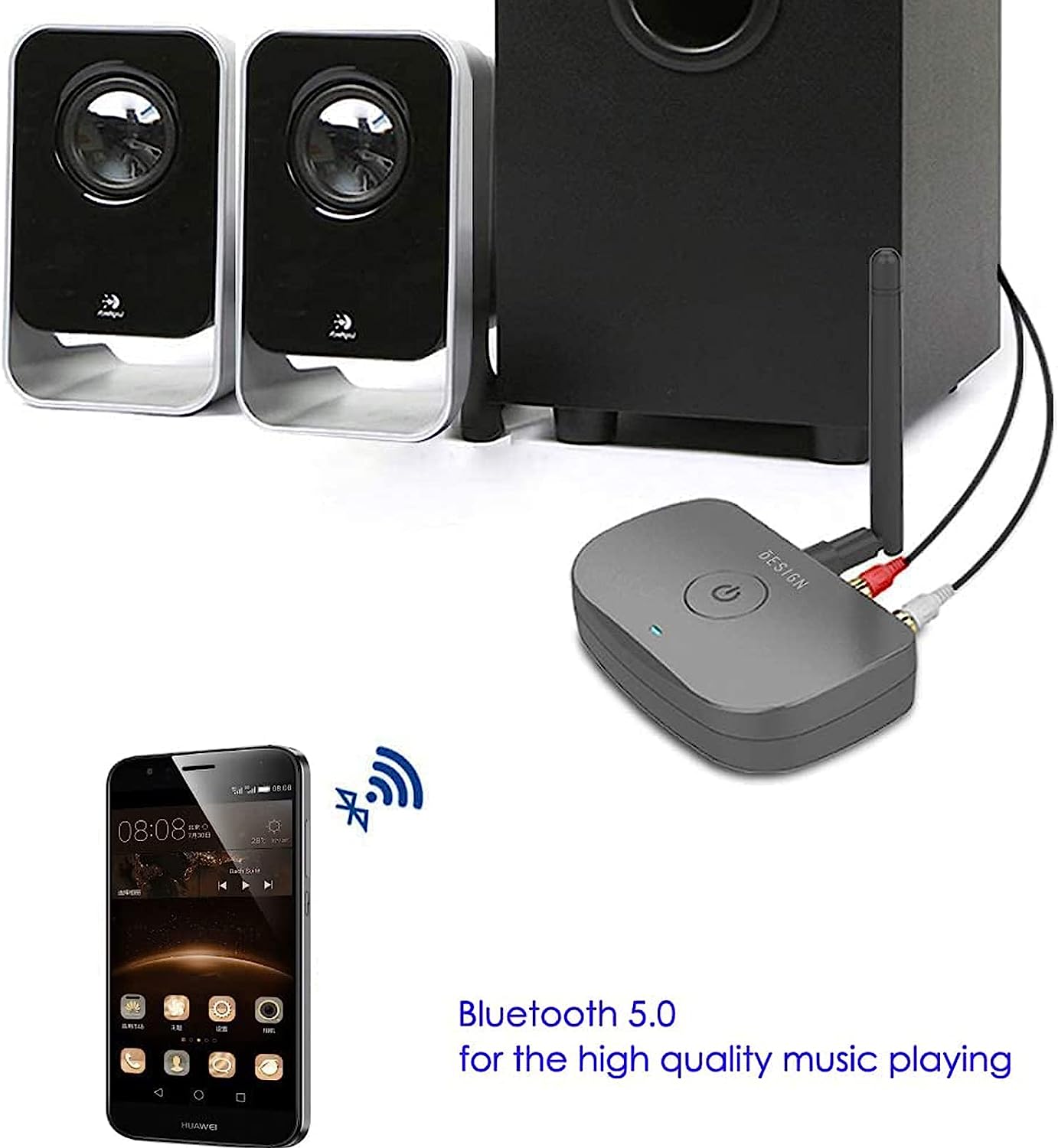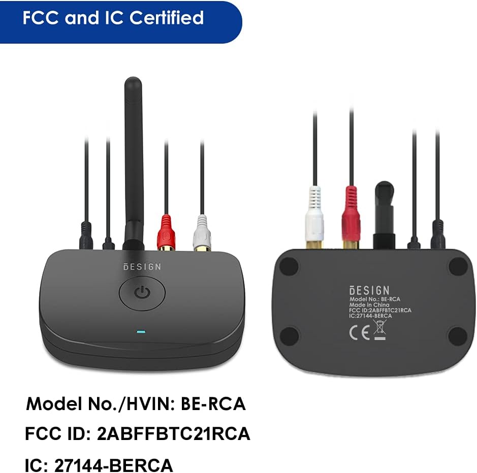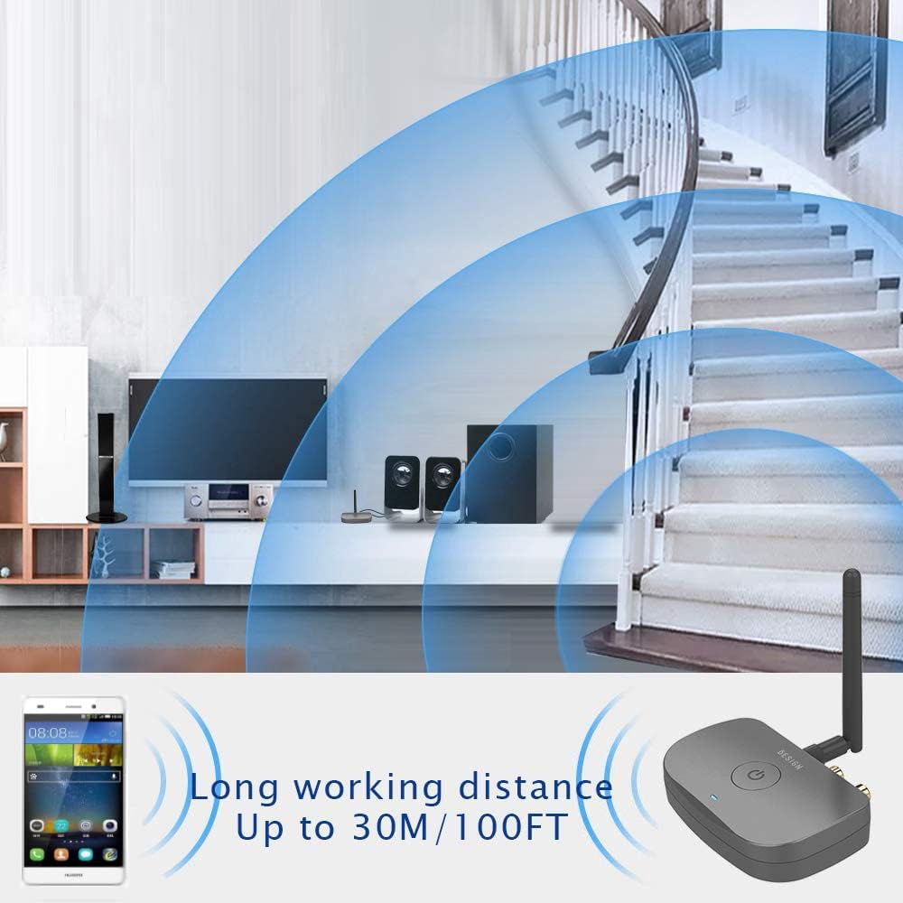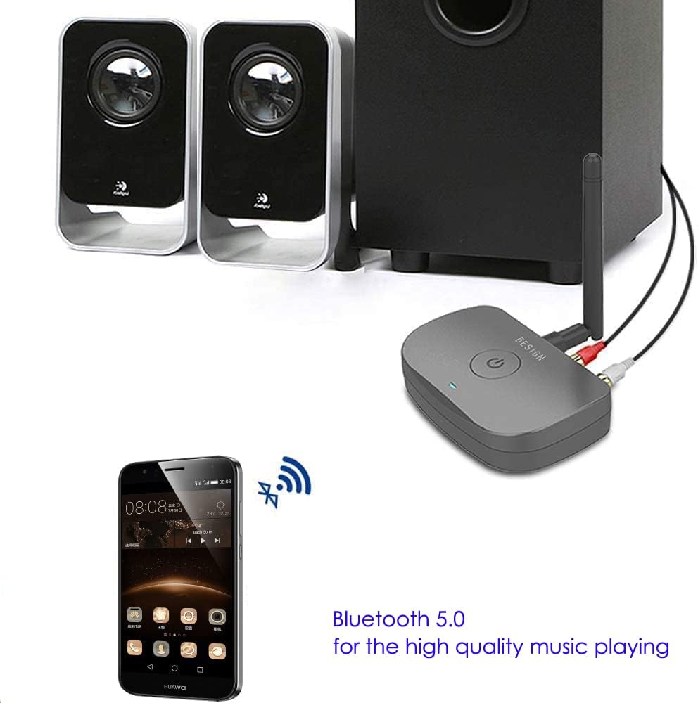 Besign BE-RCA Long Range Bluetooth Audio Adapter, HiFi Wireless Music Receiver, Bluetooth 5.0 Receiver for Wired Speakers or Home Music Streaming Stereo System, Black