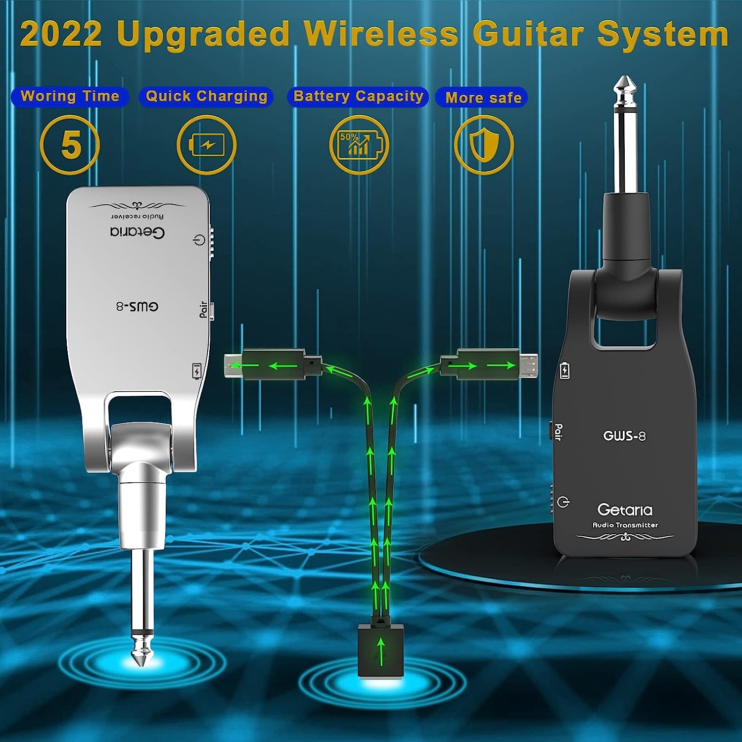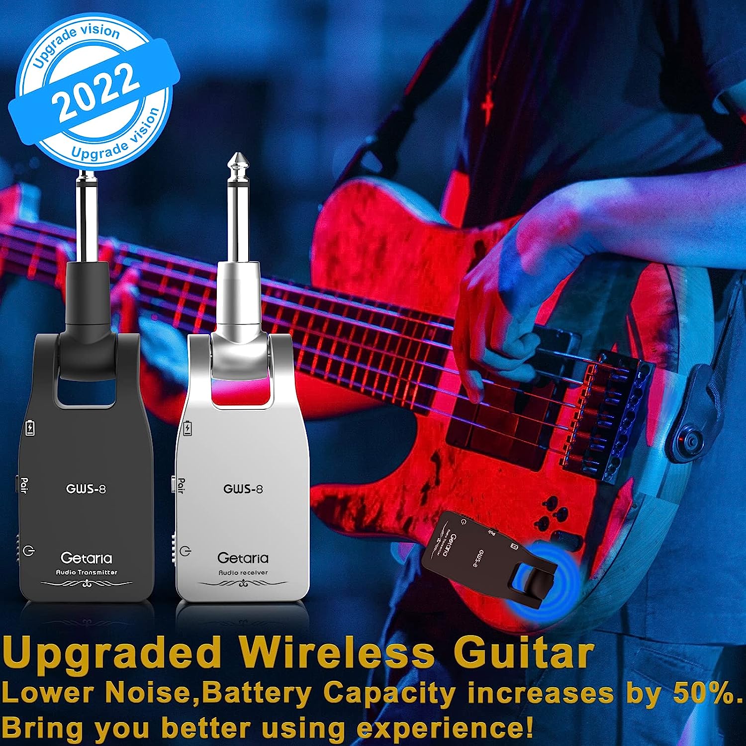 • 🎸【HIGH SOUND QUALITY】Getria wireless guitar with 2.4G Uncompressed wireless signal transmission, low noise and latency, and long transmission distance.Support more pure sound for players.