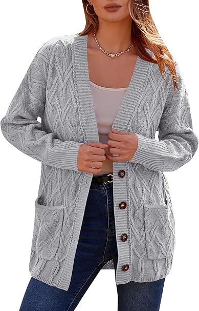 PRETTYGARDEN Women's Long Sleeve Cable Knit Cardigan Sweaters 2024 Oversized Open Front Long Cardigans Button Up Outerwear