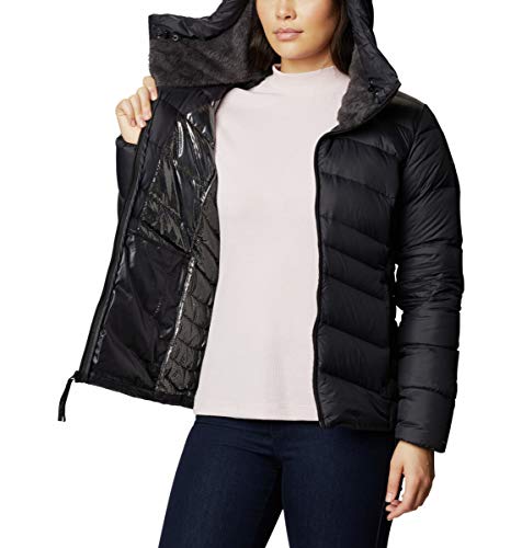 Details: The Autumn Park Down Hooded Jacket leverages the ultra weight advantage and the supreme warmth that only down fill and our reflective technology can provide. Lightweight and cut for women, this superior jacket takes that down warmth advantage, contained within a water resistant shell, adding our Omni-HEAT thermal reflective lining -- to create the perfect blend of heat retention across a wide range of outdoor climates, mild to very cold. The 650 Fill Power Down insulation works in concert with our breathable thermal lining, to create a great wearing winter coat. Zippered side pockets keep your small items secure, including your hands when the temps really drop. Made from water repellent fabric, a warm adjustable hood, as well as baffled stitching, all work to keep your down warmth in place, and you dry and comfortable during most any Fall or Winter outing. This winter jacket comes in multiple colors and sizes. Active and Regular Fit. To ensure the size you choose is right, utilize our sizing chart and the following measurement instructions: For the sleeves, start at the center back of your neck and measure across the shoulder and down to the sleeve. If you come up with a partial number, round up to the next even number. For the chest, measure at the fullest part of the chest, under the armpits and over the shoulder blades, keeping the tape measure firm and level.
