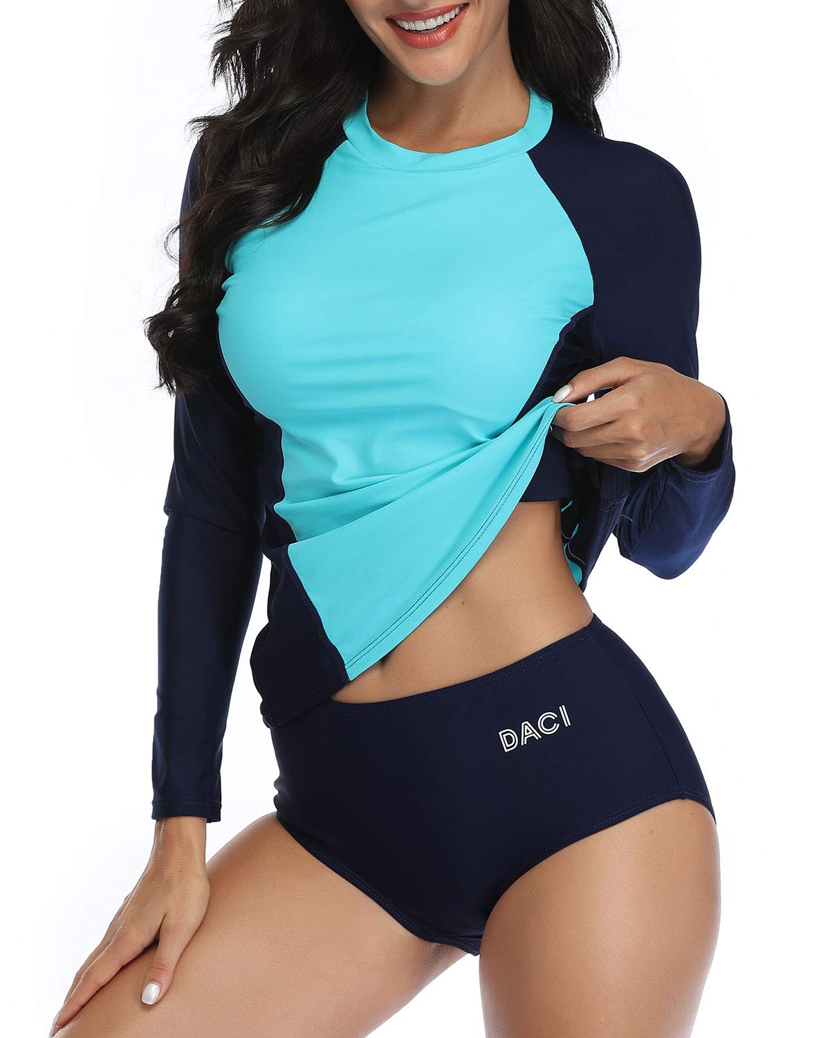 Details: Daci women long sleeve rash guard two piece swimsuits, features multiple colors and patterns, making you the center while you enjoy your time on the beach.