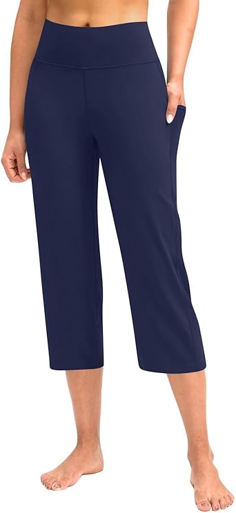 Capri Pants for Women Plus Size Casual Summer Straight Leg Yoga Capris Tummy Control Leggings Comfy Cropped Pants with Pocket
