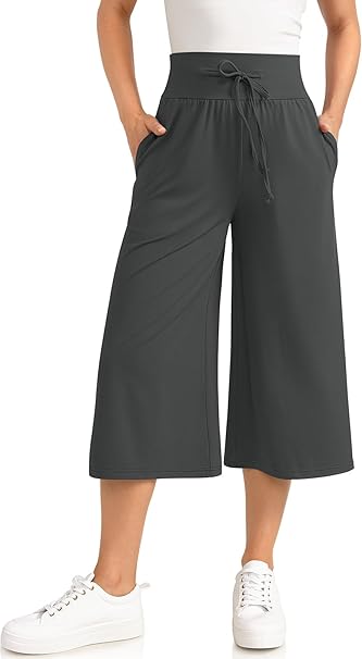 TARSE Wide Leg Cropped Palazzo Pants for Women Culottes with Pockets Summer Gaucho Pants