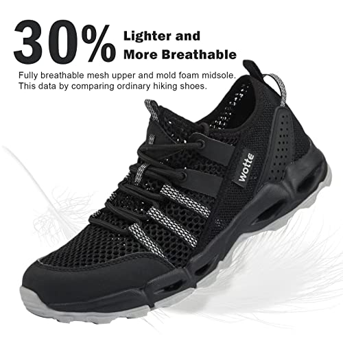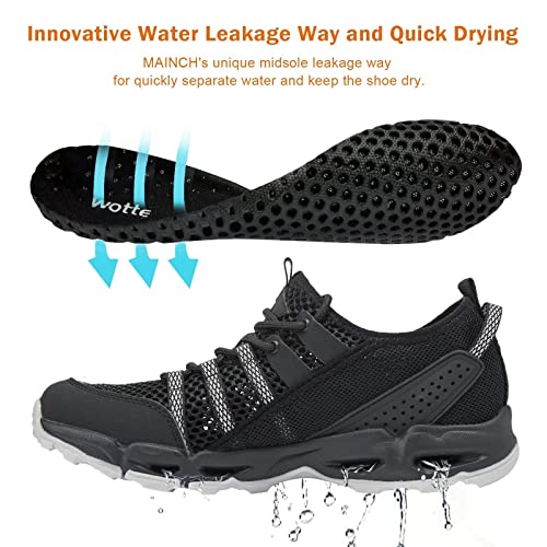 MAINCH Women's Hiking Water Shoes Quick Dry Outdoor Sport Sneakers (Black, Size 9)