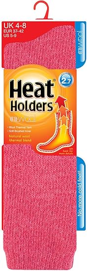Women's LONG WOOL 2.7 Tog Thermal Heat Holder Socks, 5-9 USA Pink