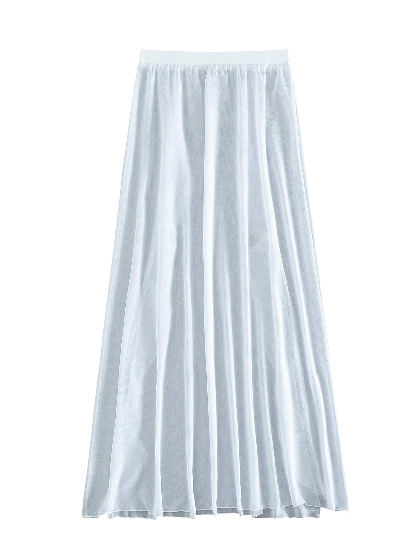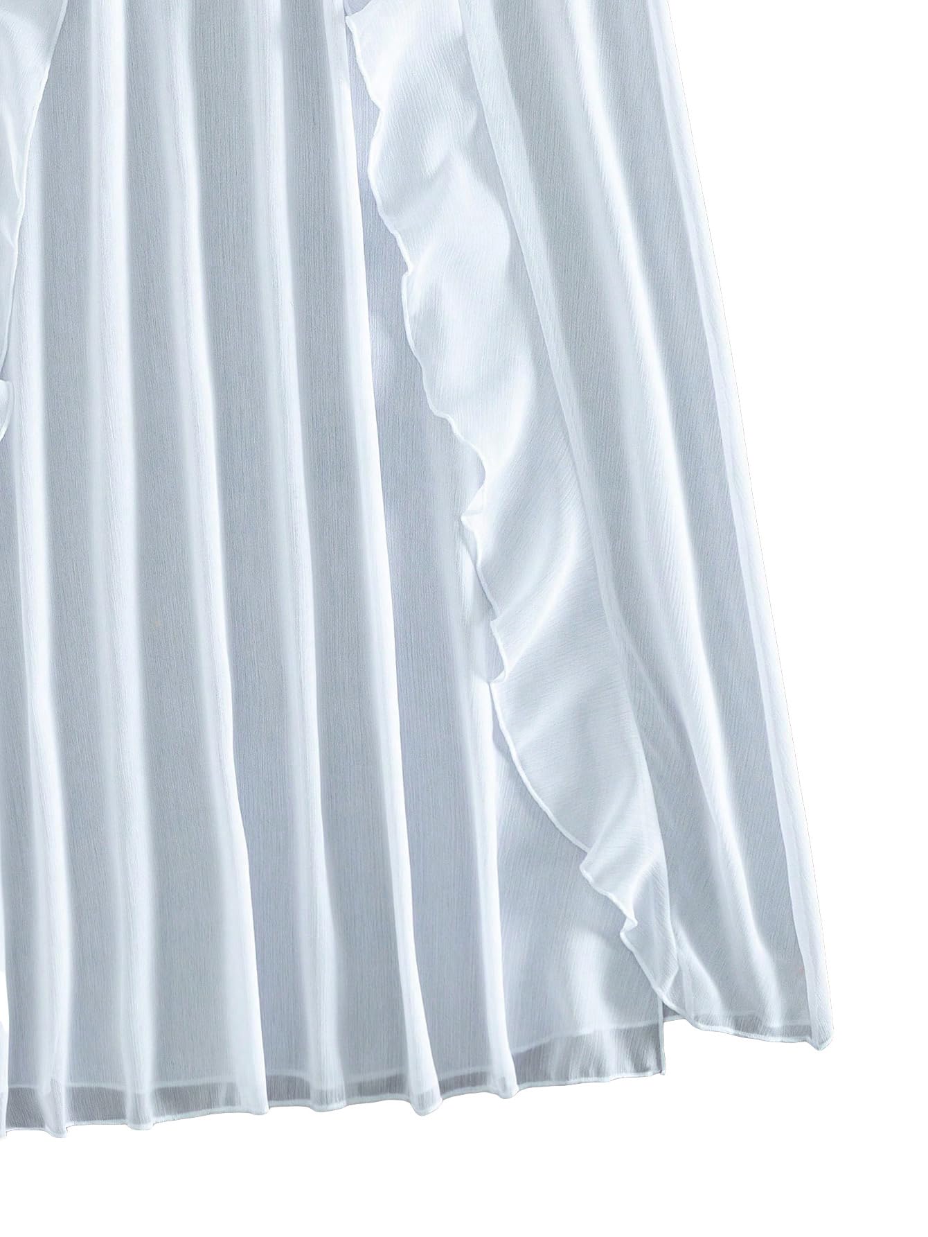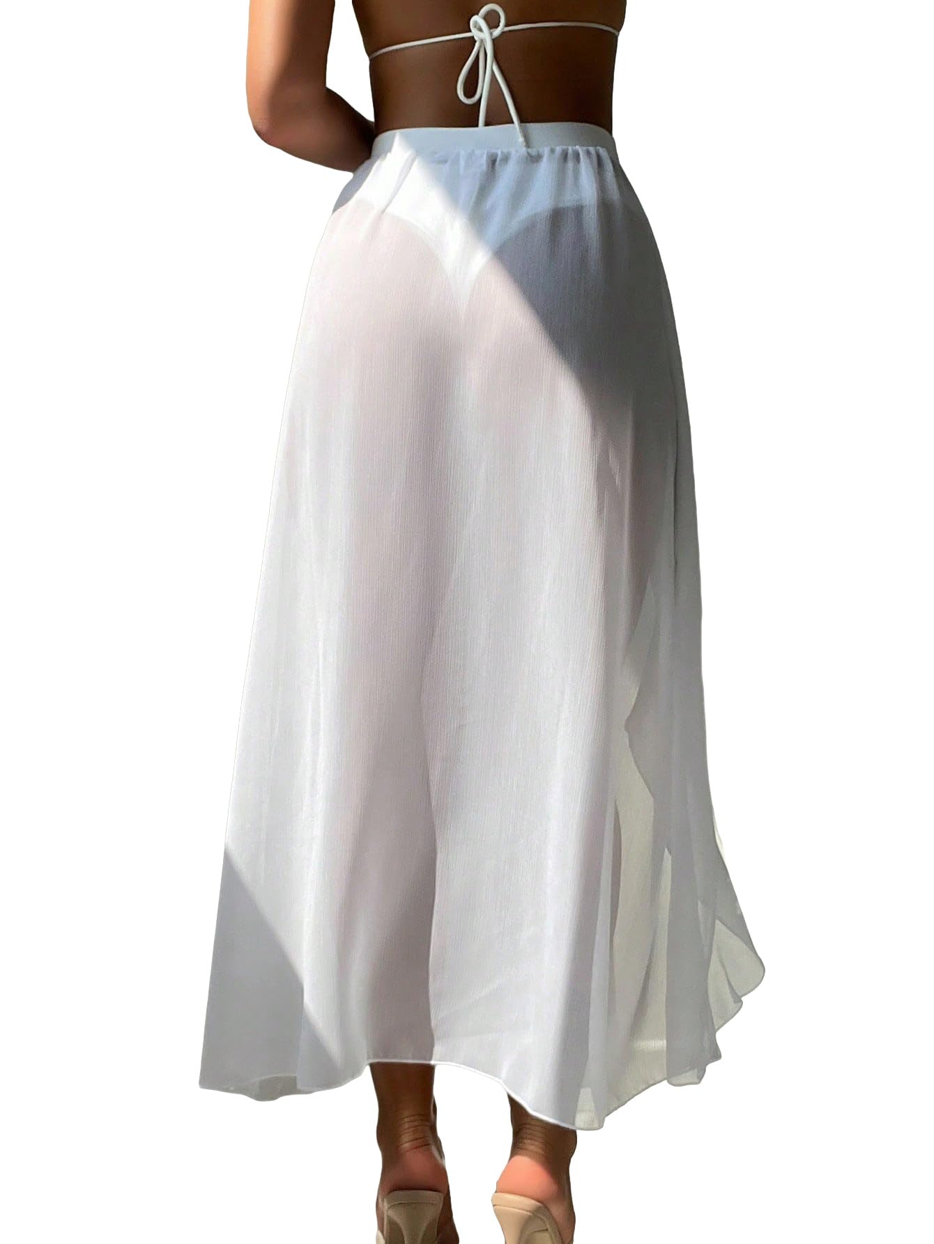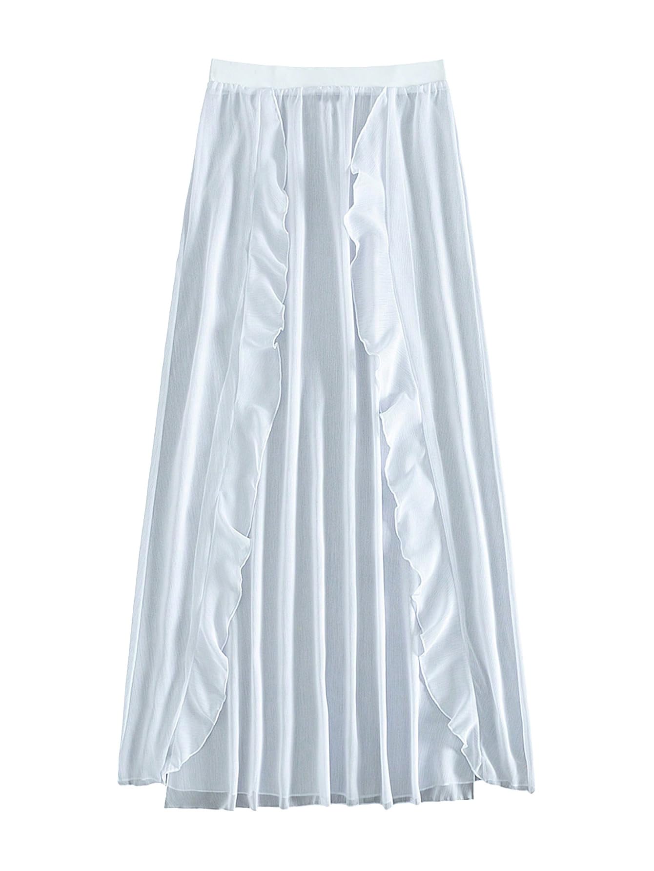 • Feature: Ruffle Trim, Double Split Front, Maxi Length, Plain, Trendy Mesh Cover Up Skirt for Women