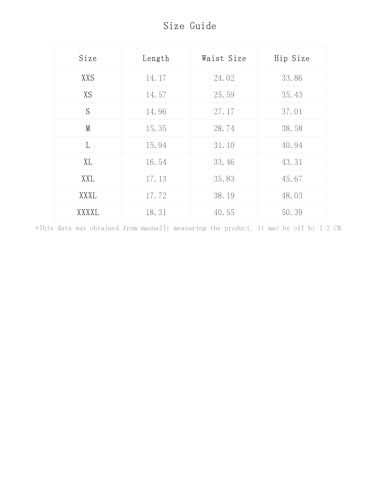 XL:Hip Size:43.3IN,Length:16.5IN,Waist Size:33.5IN