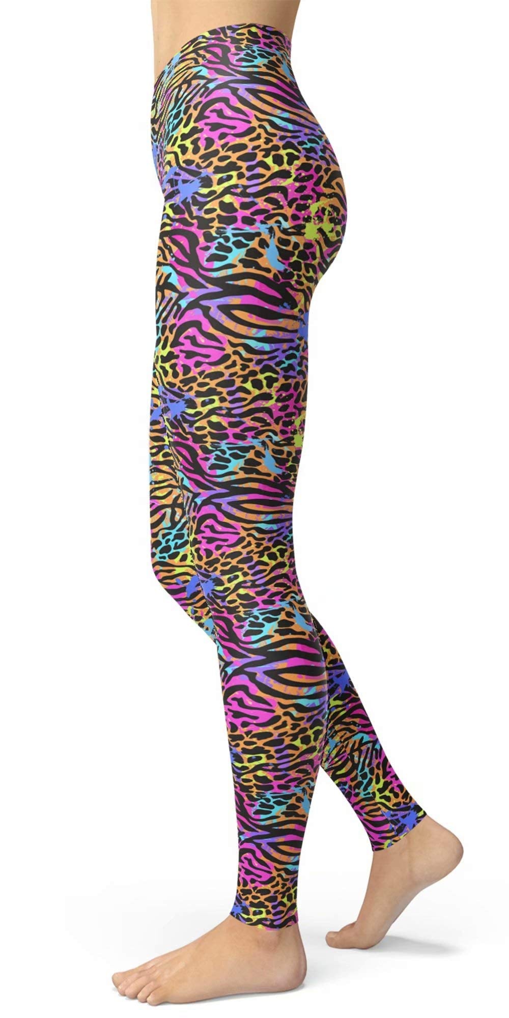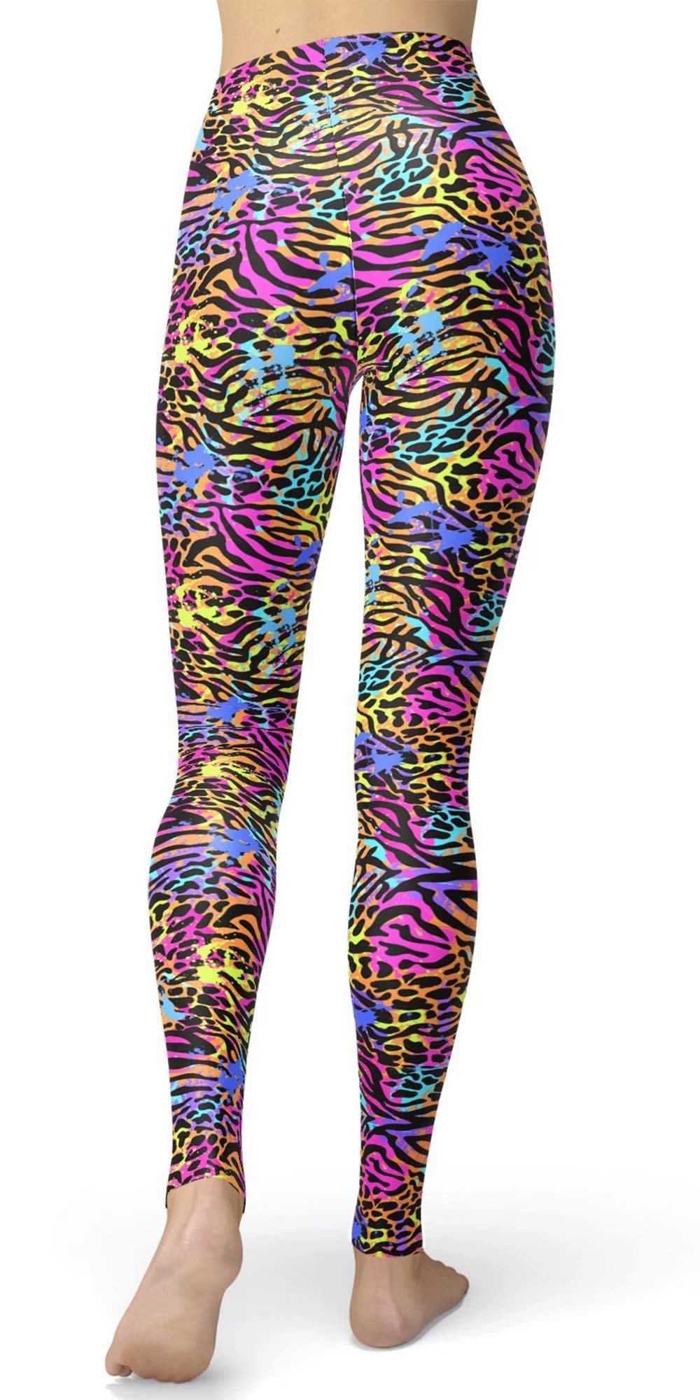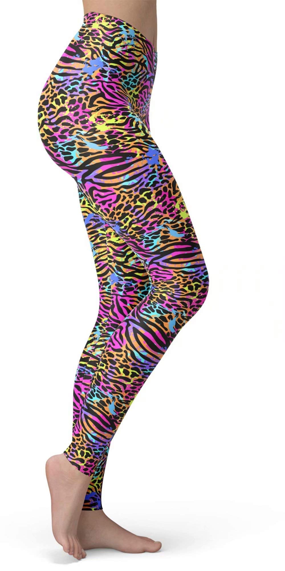 sissycos Women's Leopard Printed Leggings Buttery Soft Stretchy Pants (Large-XX-Large, Neon Zebra)
