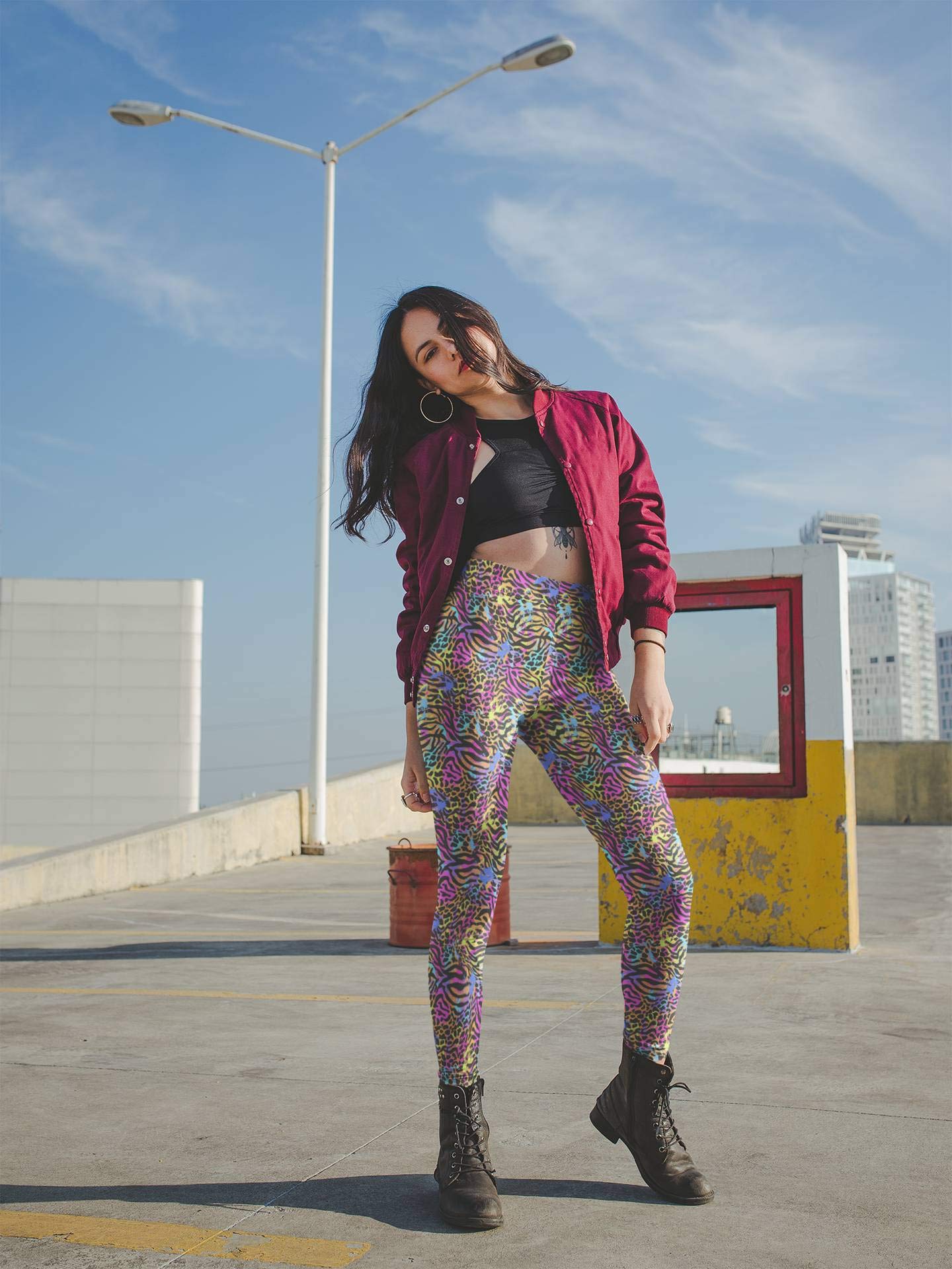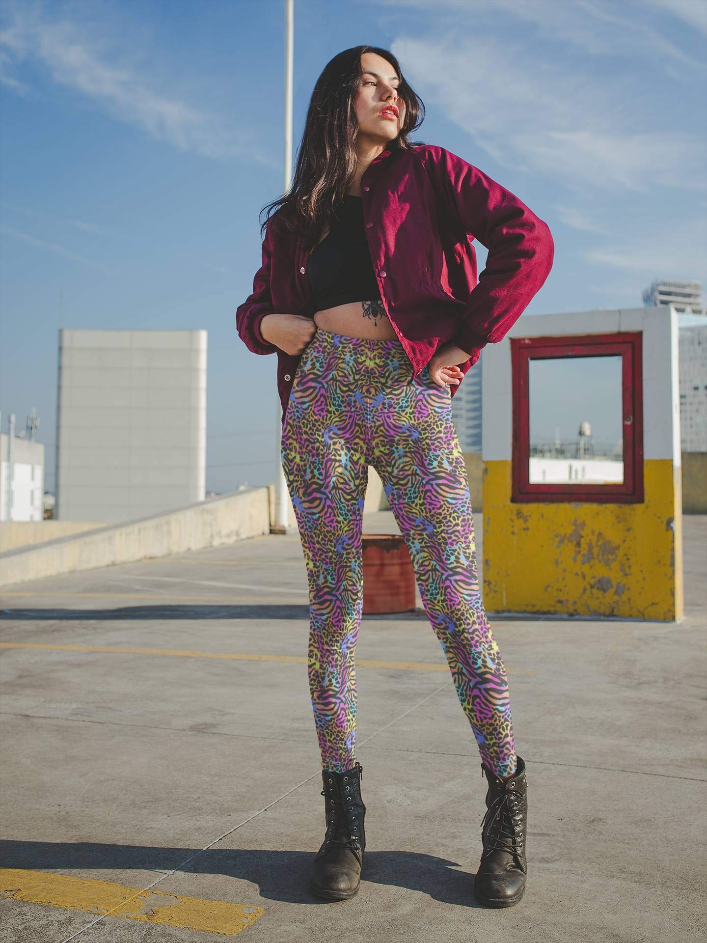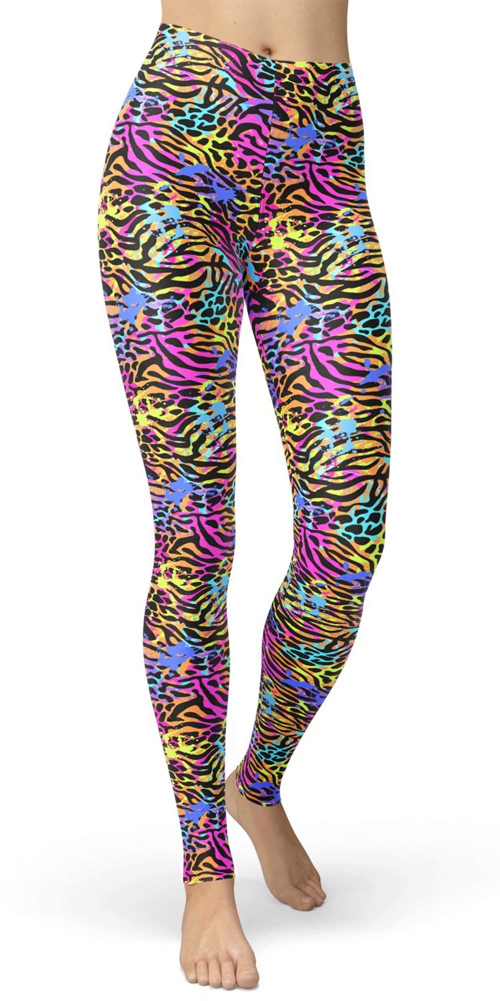 sissycos Women's Leopard Printed Leggings Buttery Soft Stretchy Pants (Large-XX-Large, Neon Zebra)