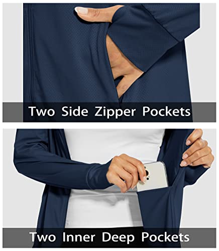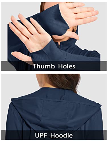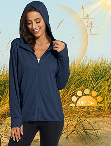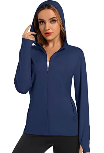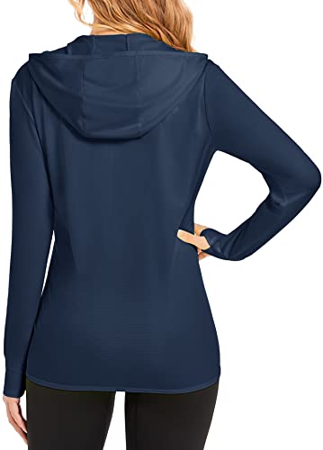 UPF 50 Long Sleeve Women Hoodie Sun Shirt Running Jackets for Women Workout Jackets for Women Runnig Jackets Women Summer Fishing Jackets Uv Jackets Navy