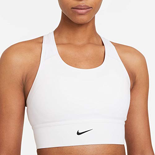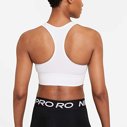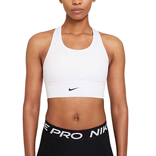 Details: The Nike Swoosh Sports Bra gives you all the coverage of a longer length with the flexibility of a racerback design. It's made from at least 50% recycled polyester with plenty of stretch to keep you moving naturally. A removable 1-piece pad slips in from the top to make life easy.