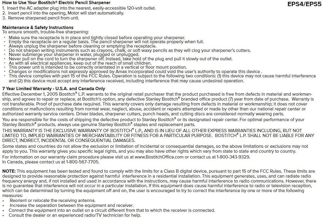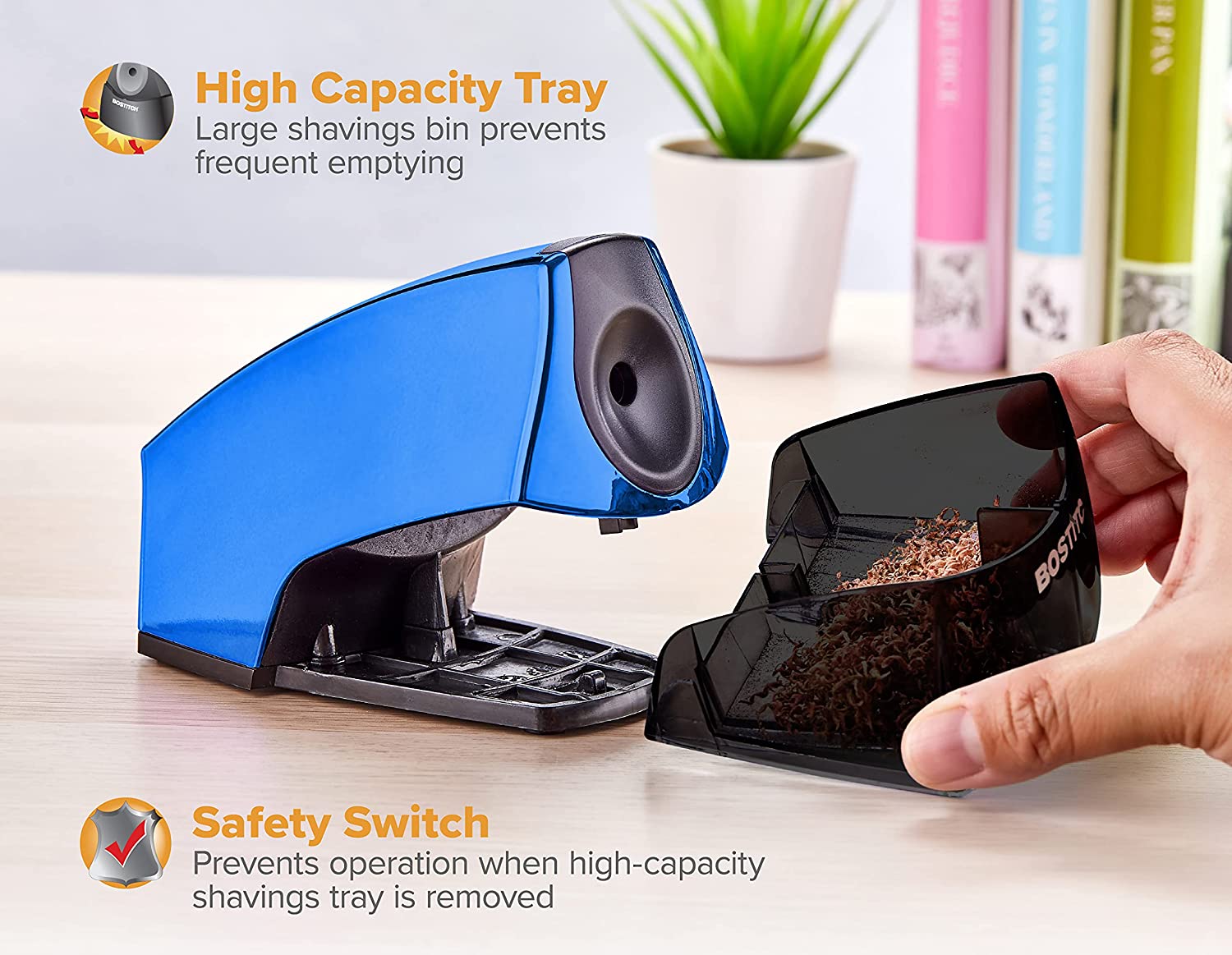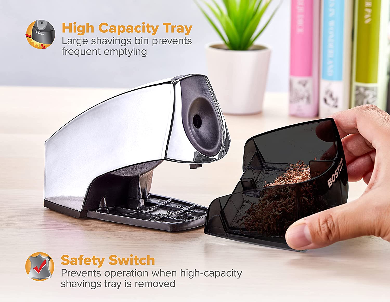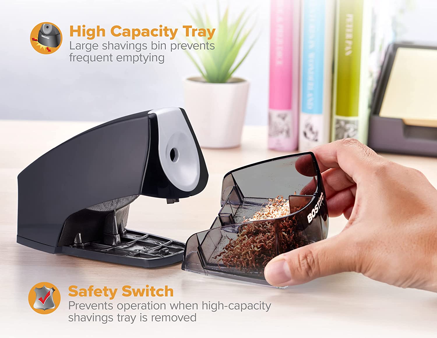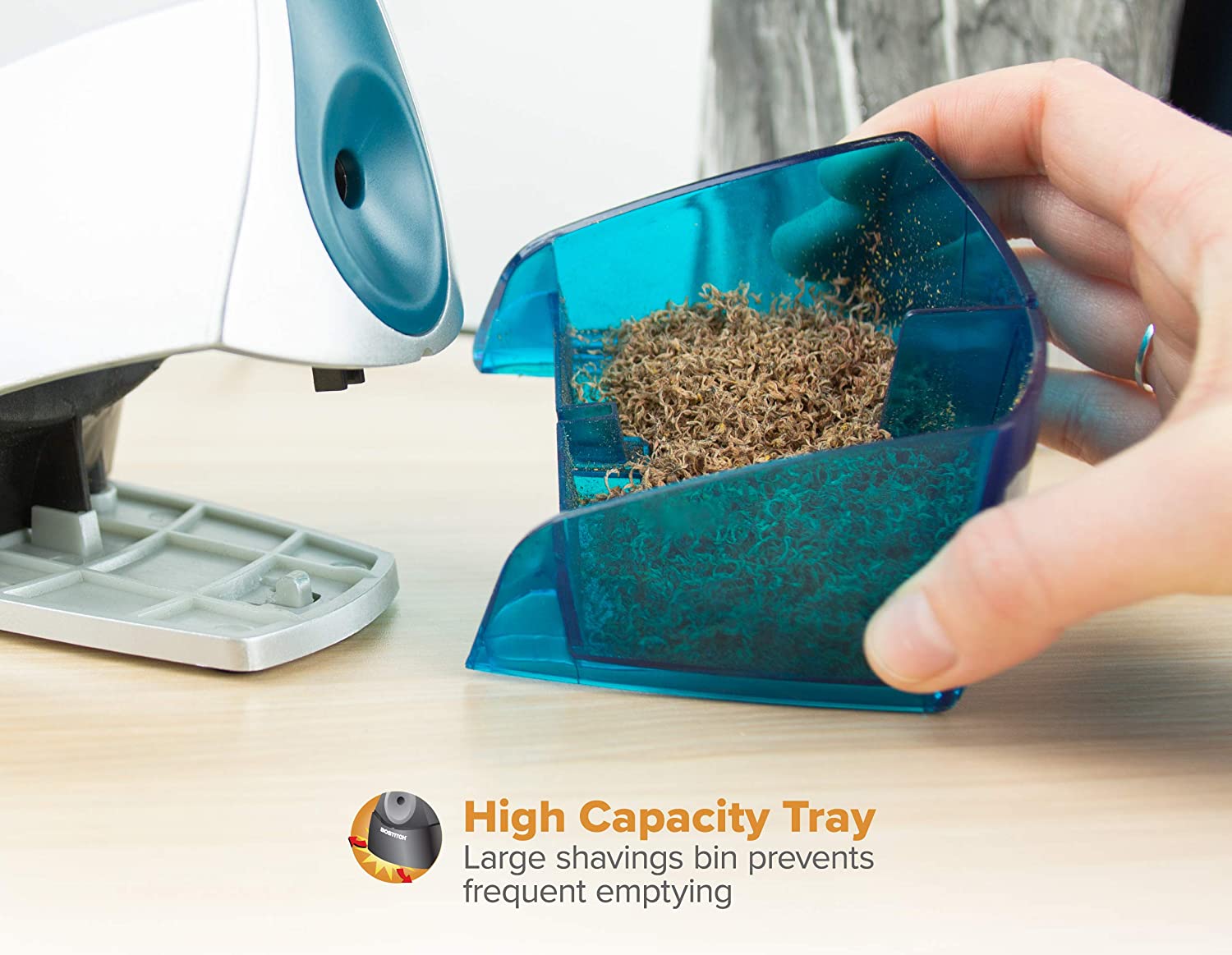 Designed to be compact, light, and efficient for the typical home or office user. Created with the home and office users in mind, its space-saver feature allows it to fit perfectly in any space and look great with its modern twist. It may be small, but it has a powerful motor you can rely on to operate stall-free. The high capacity, easy clean shavings tray will eliminate your frequent trips to the waste basket. And keeping your safety in mind, the shavings tray has the added benefit of safely preventing operation when the tray is removed. Expect precision and clean sharpening with the HHC Cutter Technology, which extends cutter life by 4x*. All completely built for personal convenience. 7 year warranty