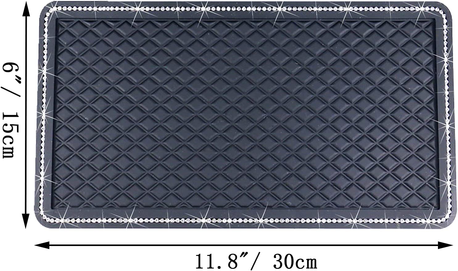 Anti-Slip Car Dash Grip Pad for Cell Phone, Keychains, Sun Glasses,Stand,New Handmade Crystal Rhinestone Mat for Navigation Cell Phone 11.5 x 6 inch (Black)