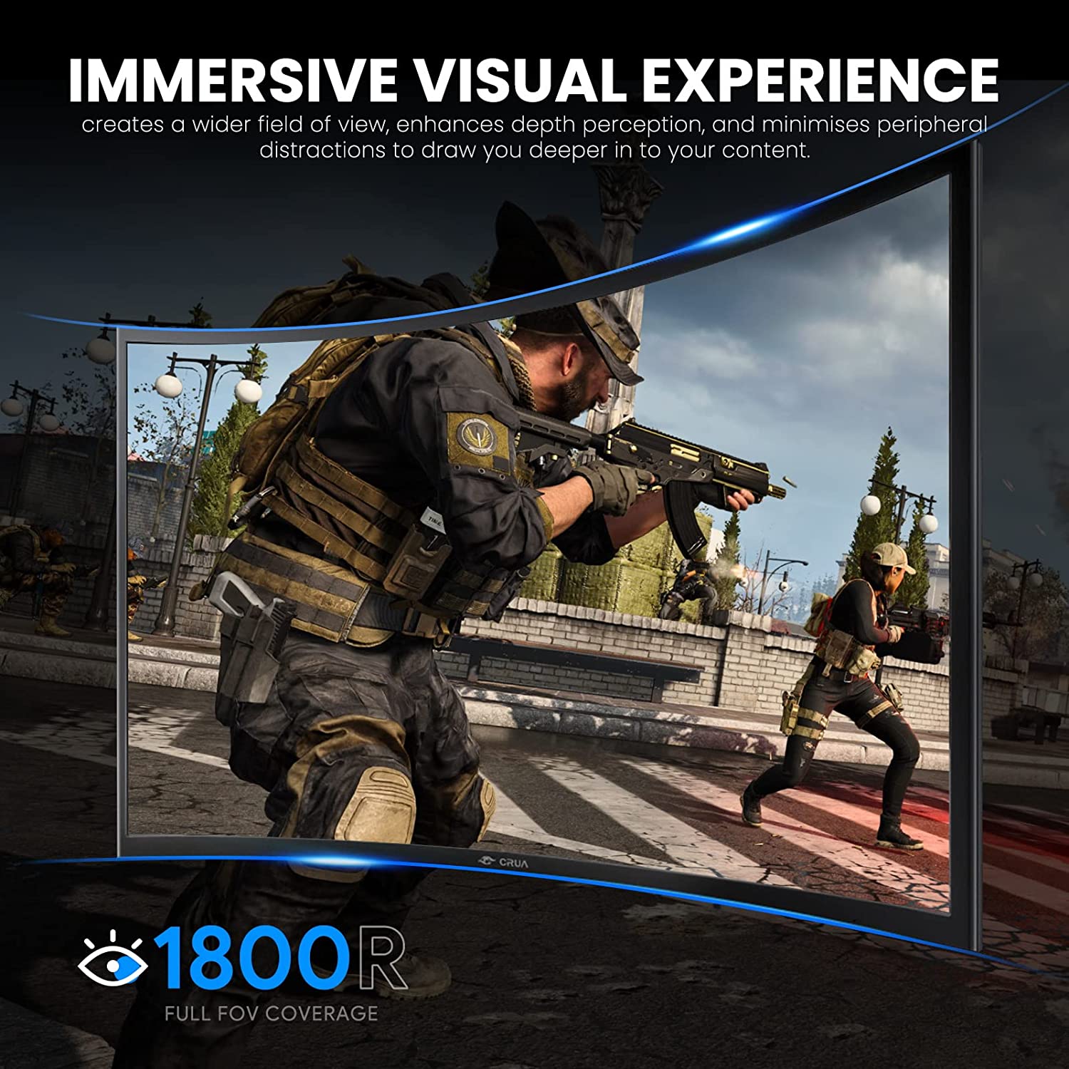 • Modern Design: 1800R curvature lets you see more content without excessive head movement.Stylish design of ultra-thin with three sides and a stable V-shaped base.A wide range of -5° to 15° tilt adjustment allows you to maximize your viewing comfort.