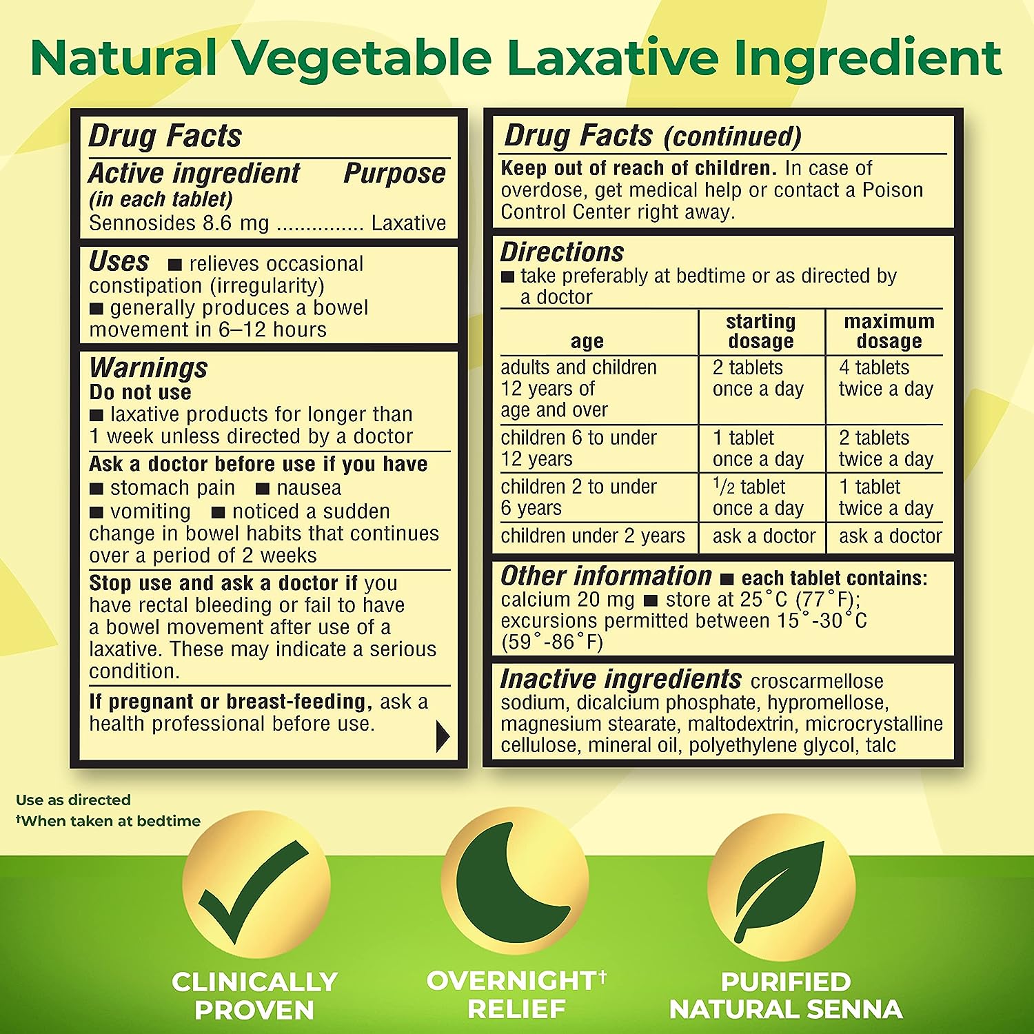 Clinically proven, Senokot Regular Strength tablets provide gentle, overnight relief from occasional constipation when taken at bedtime, using a natural vegetable laxative ingredient. For your comfort, the active ingredient in Senokot Regular Strength laxative tablets is purified senna, manufactured to high quality standards. Senokot Regular Strength tablets generally produce a bowel movement in 6-12 hours and can be used in children ages 2+. Constipation can certainly interfere with your day and may be caused by travel, stress, dietary changes, or aging. Senokot combines nature and science to give you five formulations that meet your specific needs. Satisfaction guaranteed. For over 65 years, physicians and pharmacists have trusted – and consumers have relied on – the Senokot brand to provide gentle, effective overnight relief of occasional constipation. Senokot Regular Strength is FSA or HSA eligible. Use as directed.