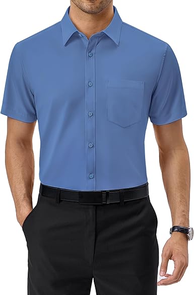 Alimens & Gentle Mens Short Sleeve Dress Shirts Regular Fit Stretch Wrinkle-Resistant Button Down Shirts Classic Blue