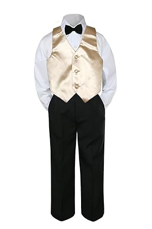 4pc Baby Toddler Kid Boys Champagne Vest Black Pants Bow Tie Suits Set (4T)