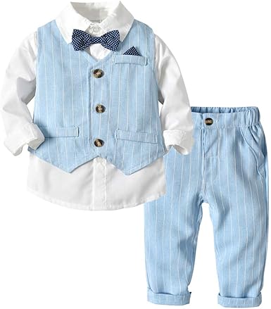 Baby Boys Formal Suit Toddler Gentleman Set Dress Slim Fit Shirt+Vest+Pants Outfits Tuxedo 9M - 8 Years
