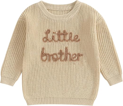 Big Brother Little Brother Matching Sweaters Baby Boy Letter Embroidery Crew Neck Long Sleeve Knitted Pullovers