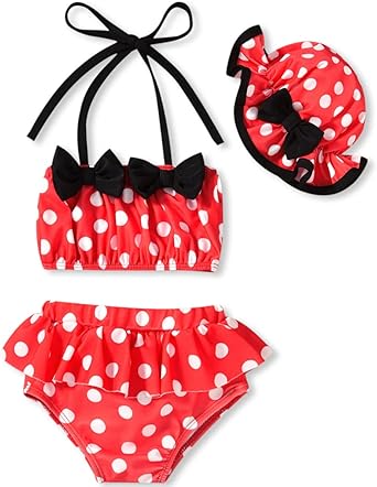 Aalizzwell Toddler Baby Girls 3 Piece Bikini Set Bathing Suit with Hat