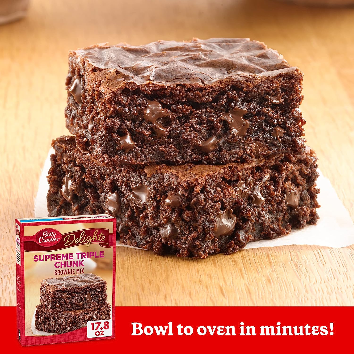 Decadent brownies minus the effort? Betty Crocker Fudge Brownie Mix is your go-to for thick, fudgy brownies with an intense chocolate taste. Plus, they go from bowl to oven in minutes — simply mix with water, oil, and eggs, pour into a greased pan, and bake for ridiculously good brownies your whole family will enjoy. Use the brownie baking mix as is or explore Betty Crocker recipes for a new take on this classic dessert.