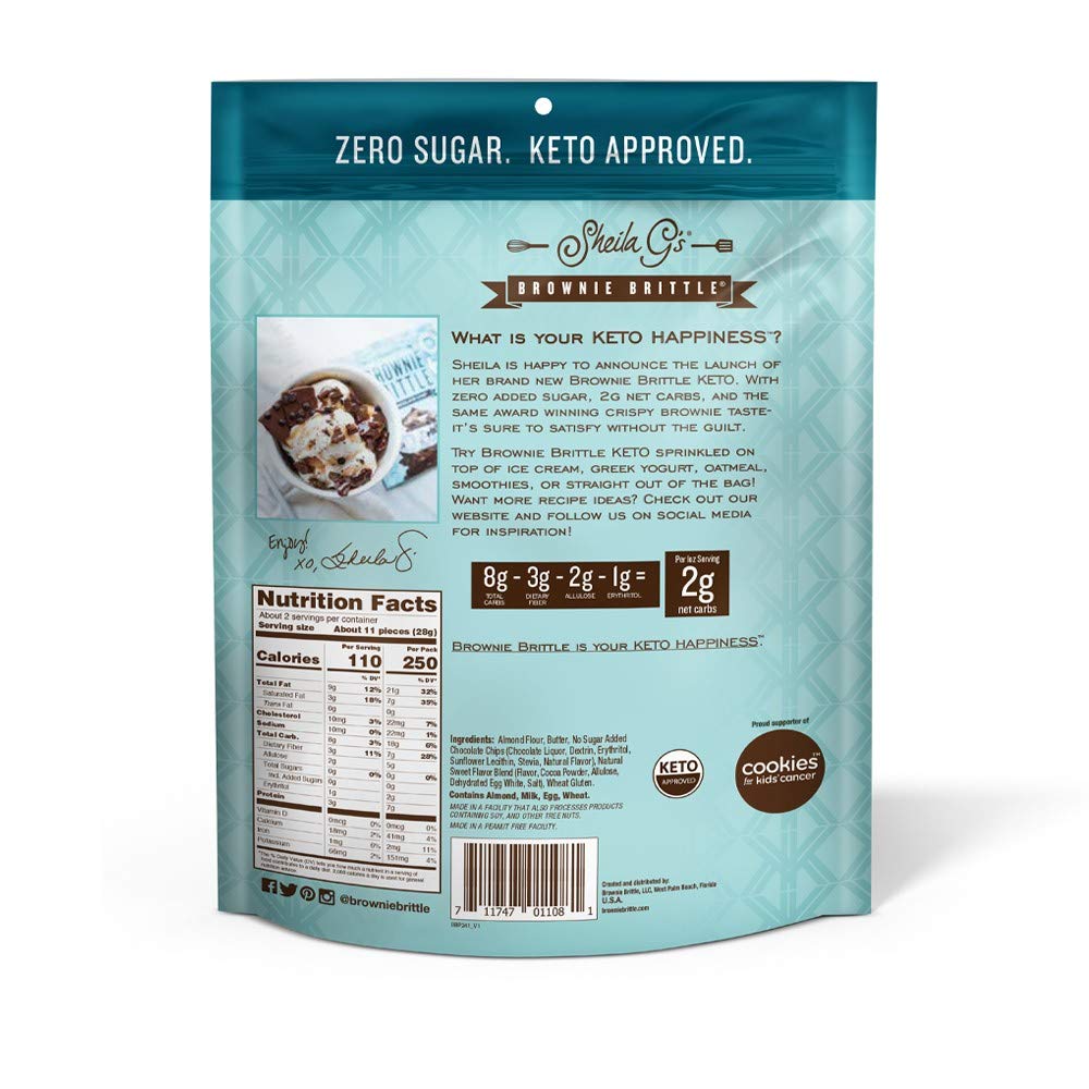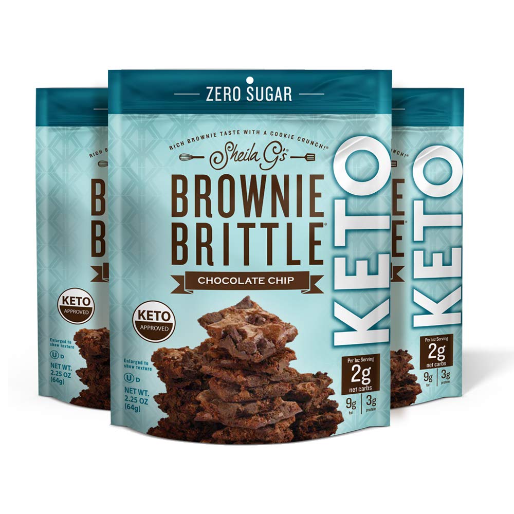 Sheila G's Brownie Brittle Keto Chocolate Chip-No Added Sugar, Perfect for Ketogenic Diets, Low Carb Sweet Crispy Snack-Rich Brownie Taste with a Cookie Crunch- 2.25oz, Pack of 3