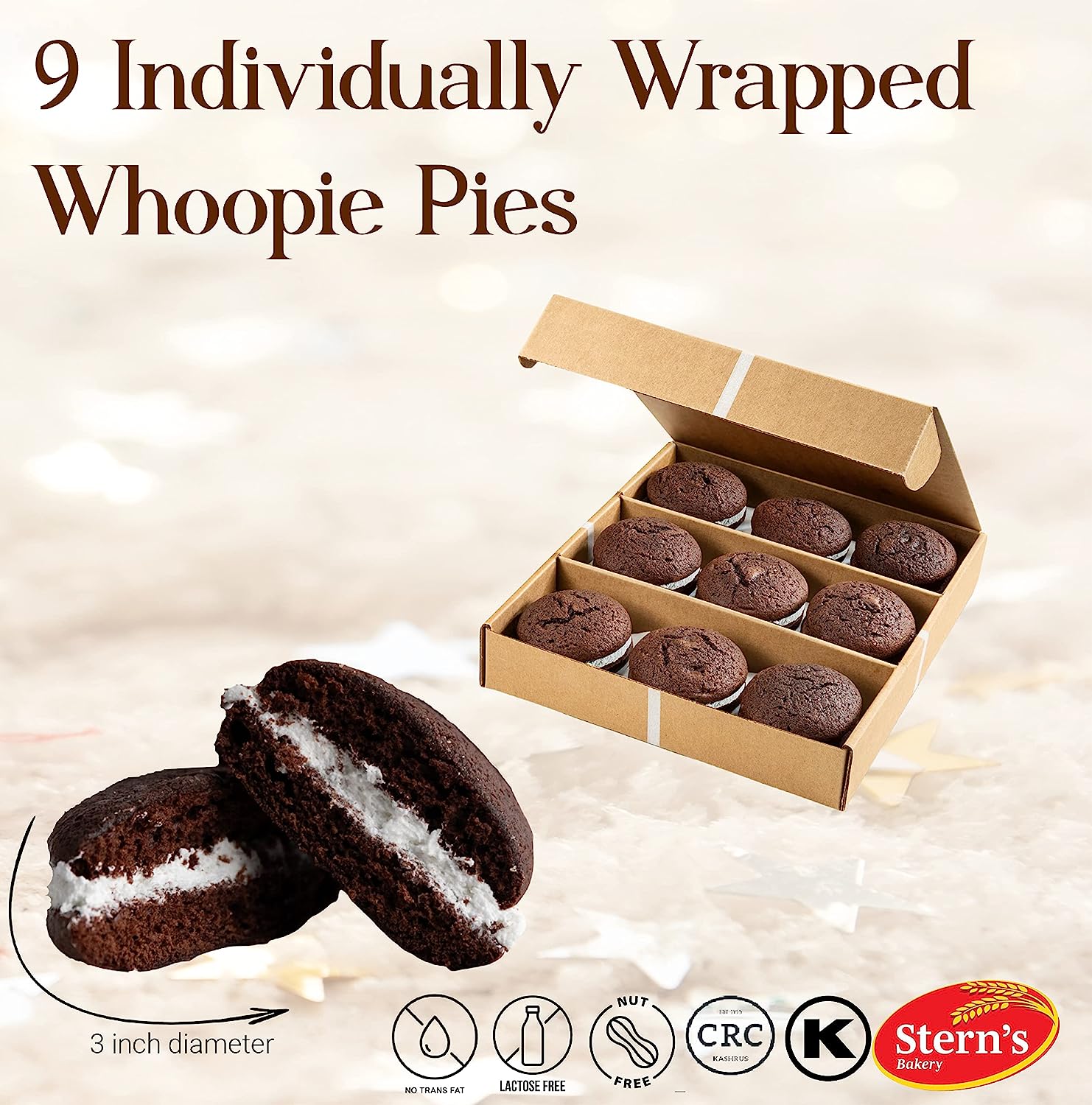 Whoopie Pies Bakery Dessert | Individually Wrapped Whoopee Pies [9 Count] | Gourmet Cookie Gifts | Kosher & Nut Free | Fresh Bakery Cookies for Holidays, Birthdays, College Care Package for Girls, Coworkers, Friends | Stern’s Bakery