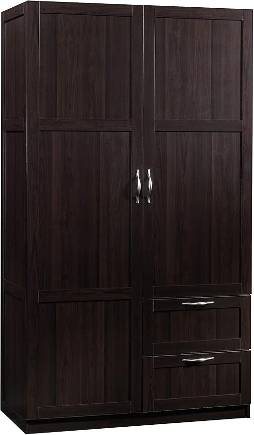 Sauder Select Multipurpose Bedroom Armoire Wardrobe Closet Pantry Storage Cabinet with Drawers and Hanging Rail, L: 40. 00" x W: 19. 45" x H: 71. 10", Cinnamon Cherry