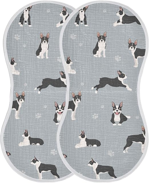 Boston Terrier Dog Do Yoga Muslin Burp Cloths for Baby 2 Pack 100% Cotton Baby Washcloths Bibs for Boy Girl