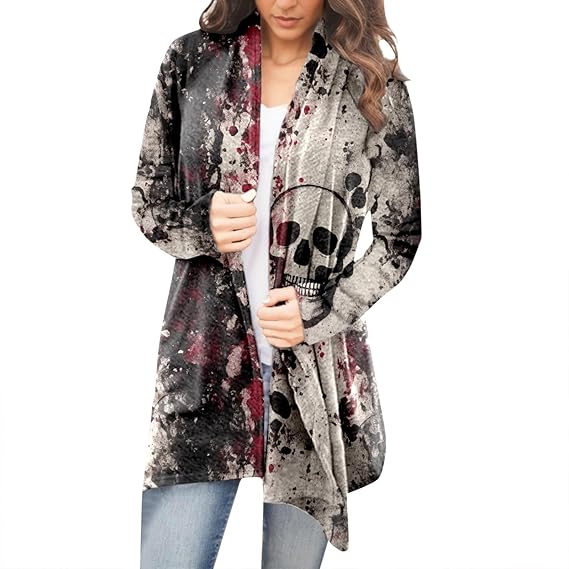 Women Halloween Fashion Casual Print Long Sleeve Tops Loose Jacket Daily Cardigan over Size Sweaters Women Childrens Hallowee