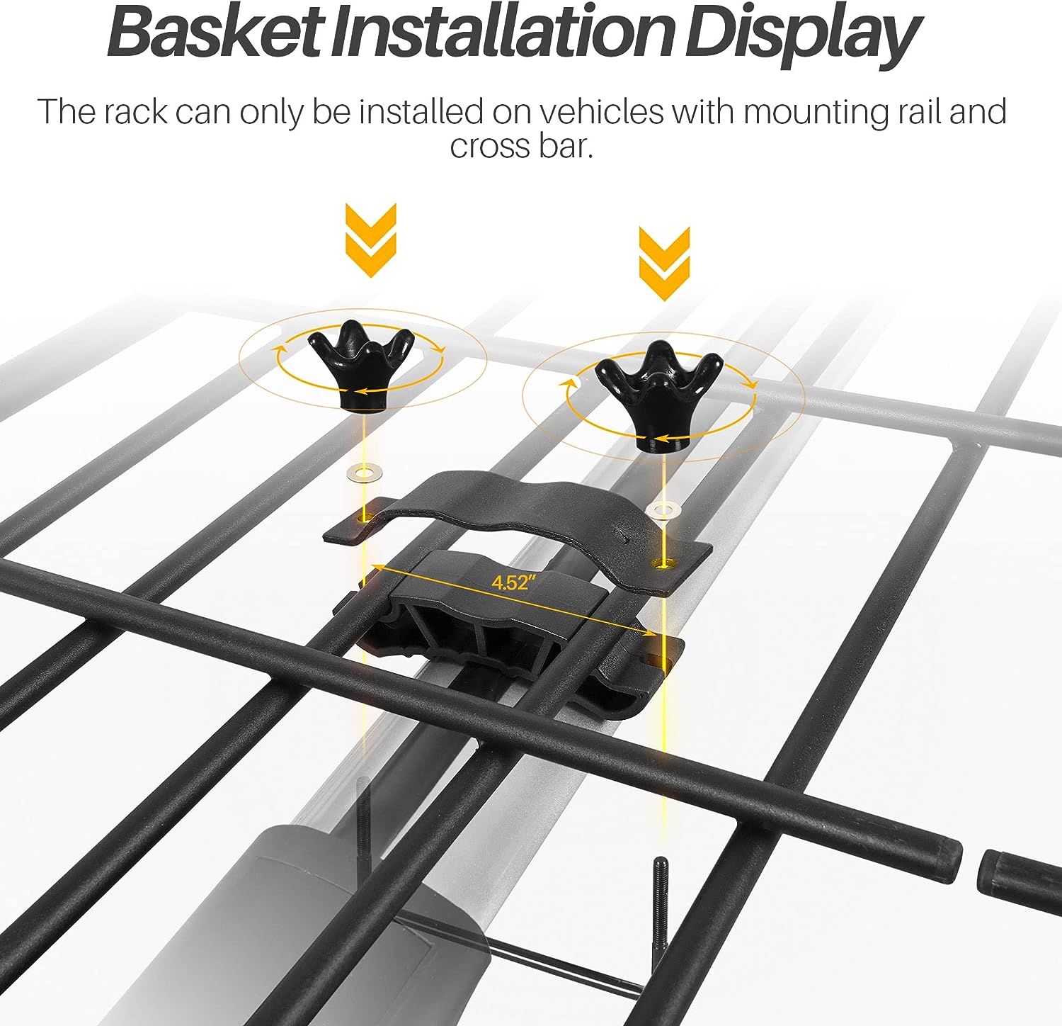 • [EASY INSTALLATION] Easy to install on most vehicles. This cargo carrier utilizes your car's crossbars, easily mounting with four universal U-bolts.