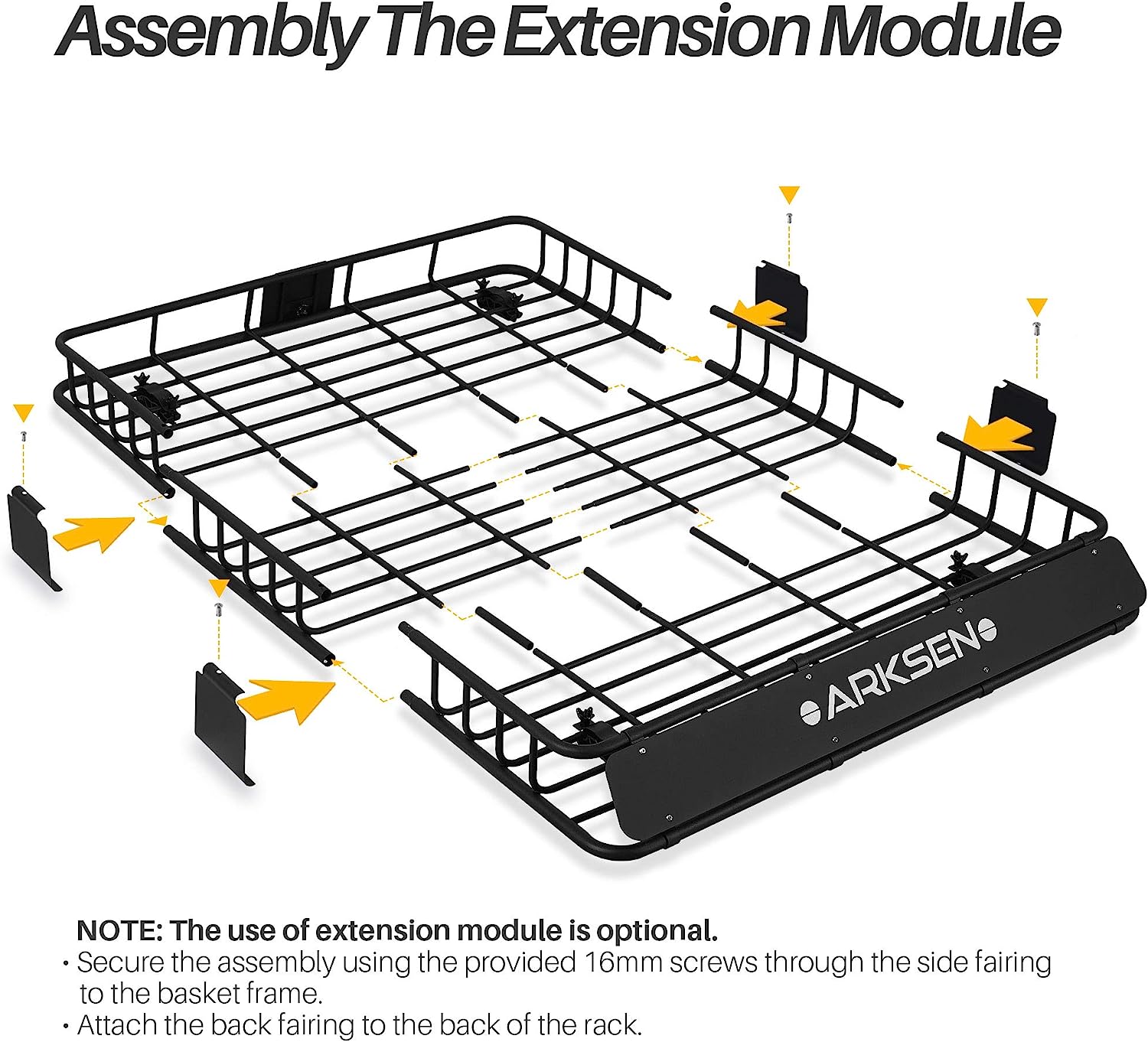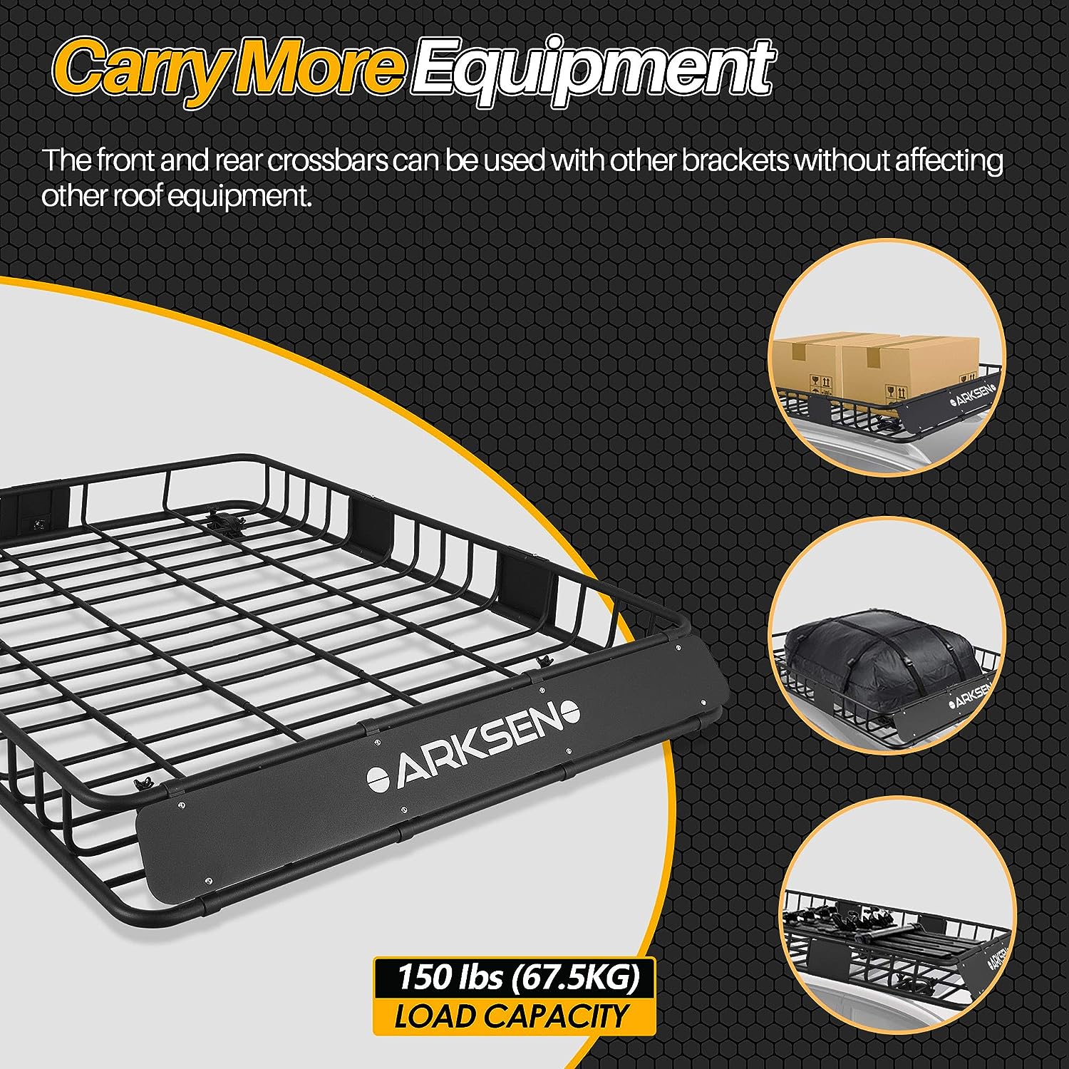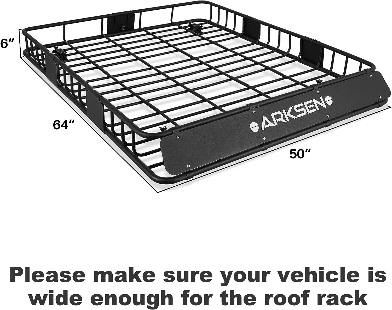 ARKSEN 64 x 50 Inch Universal Extra Wide 150LB Heavy Duty Roof Rack Cargo with Extension Car Top Luggage Holder Carrier Basket for SUV, Truck, & Car Steel Construction